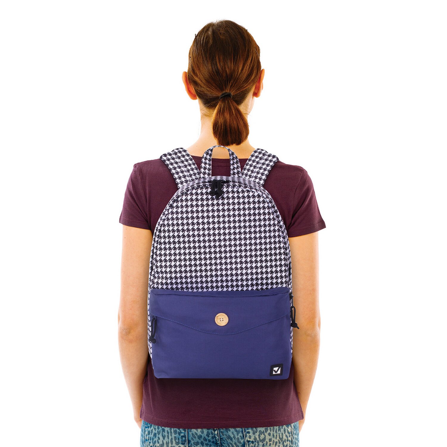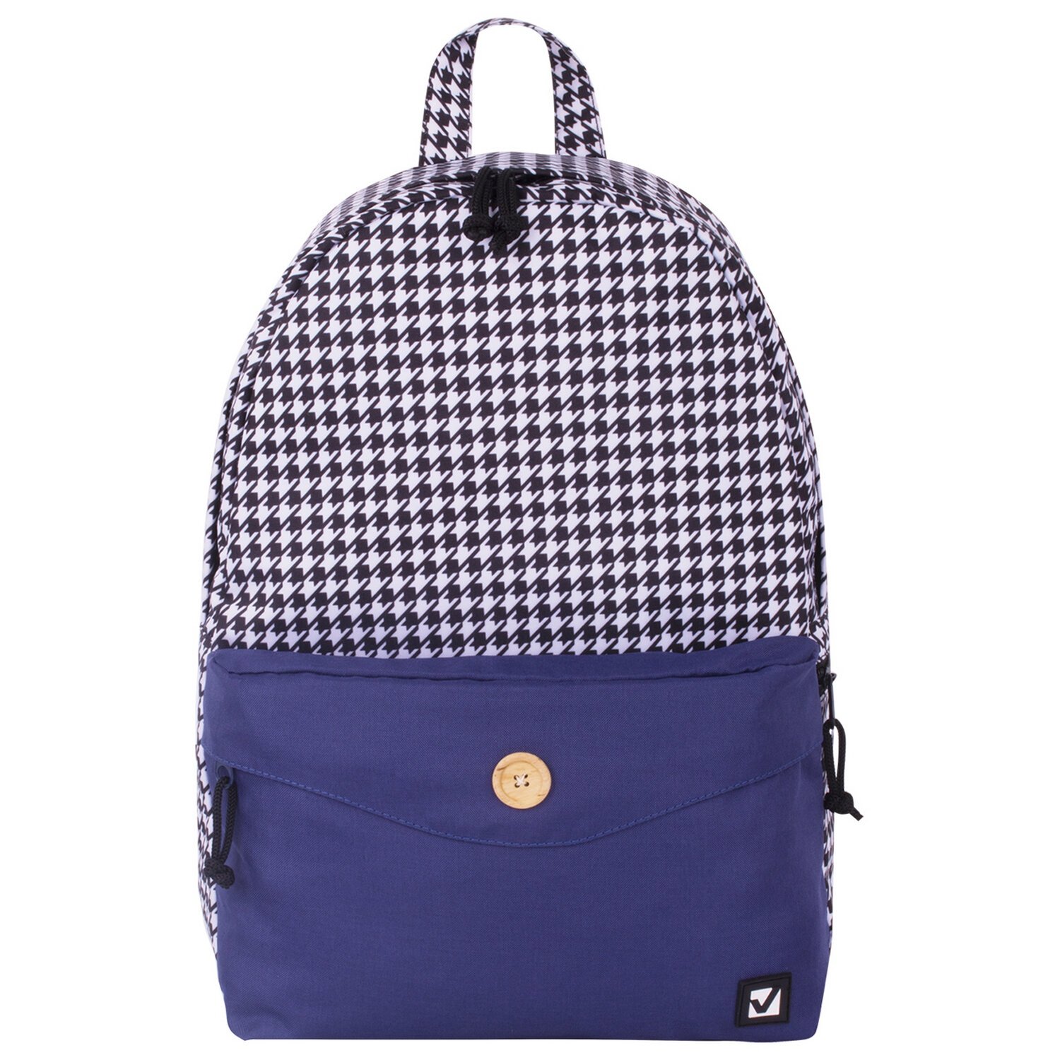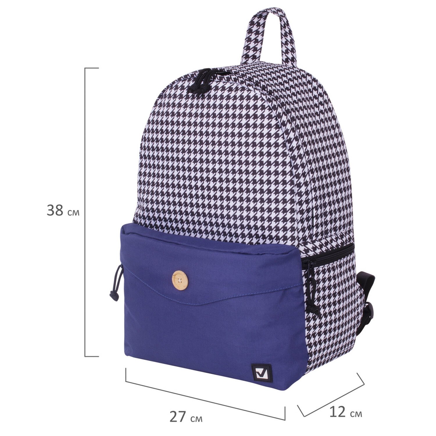 Рюкзак BRAUBERG SYDNEY универсальный, карман с пуговицей, бело-синий, узор клетка, 38х27х12 см, 228840