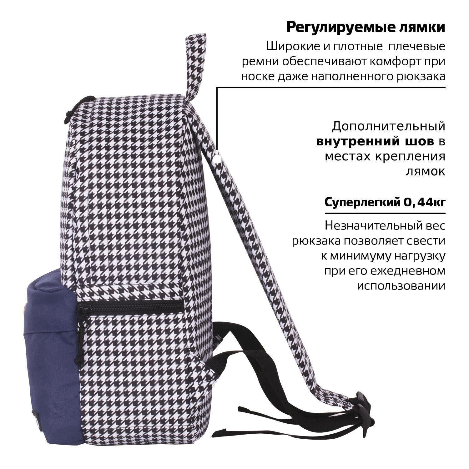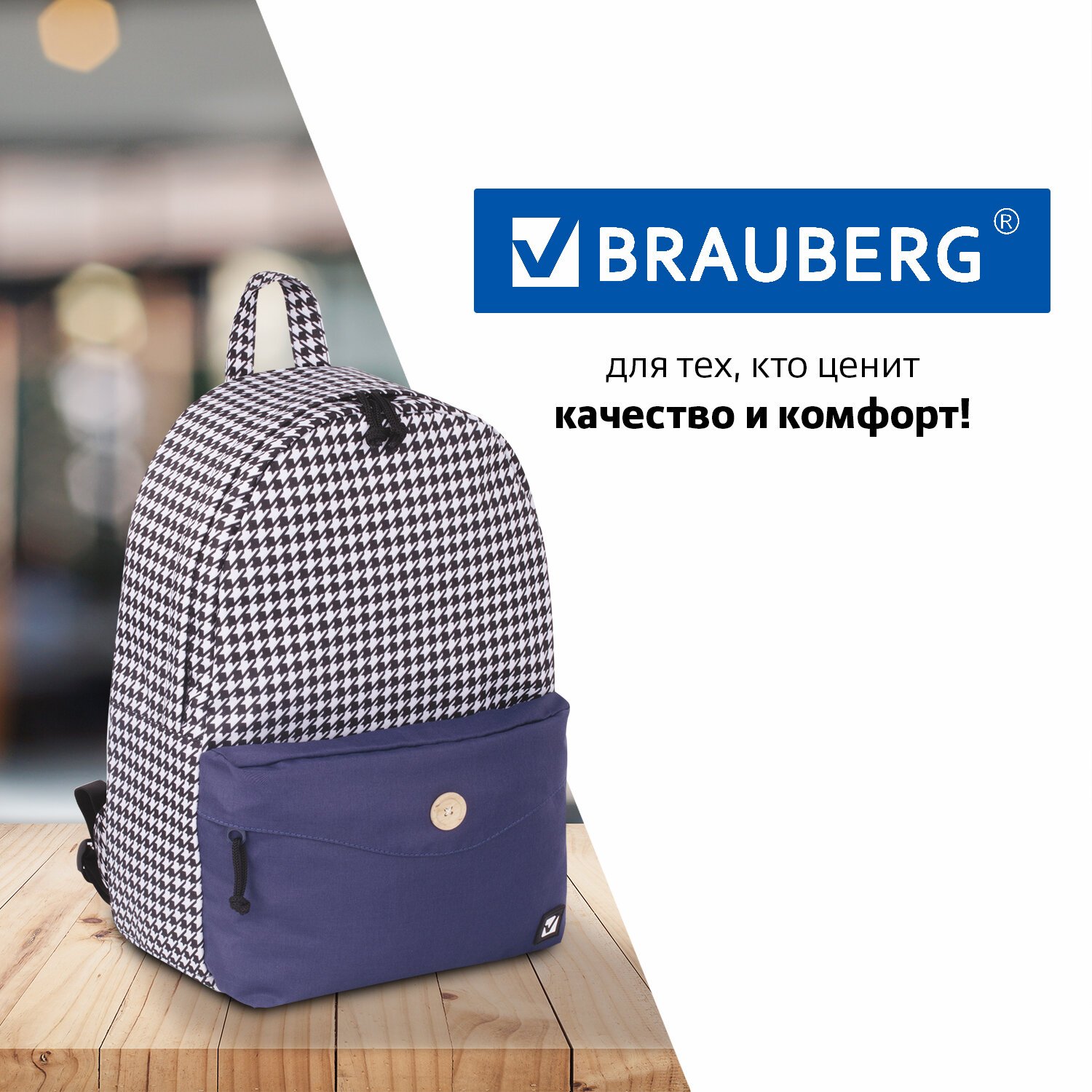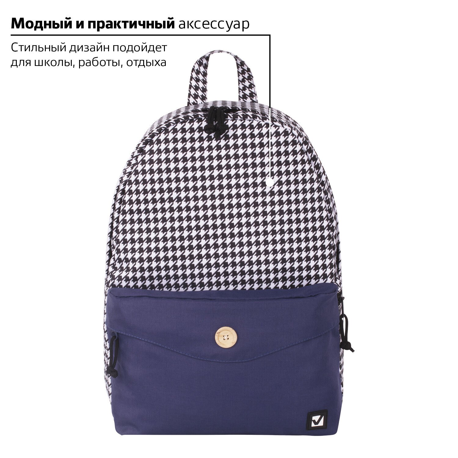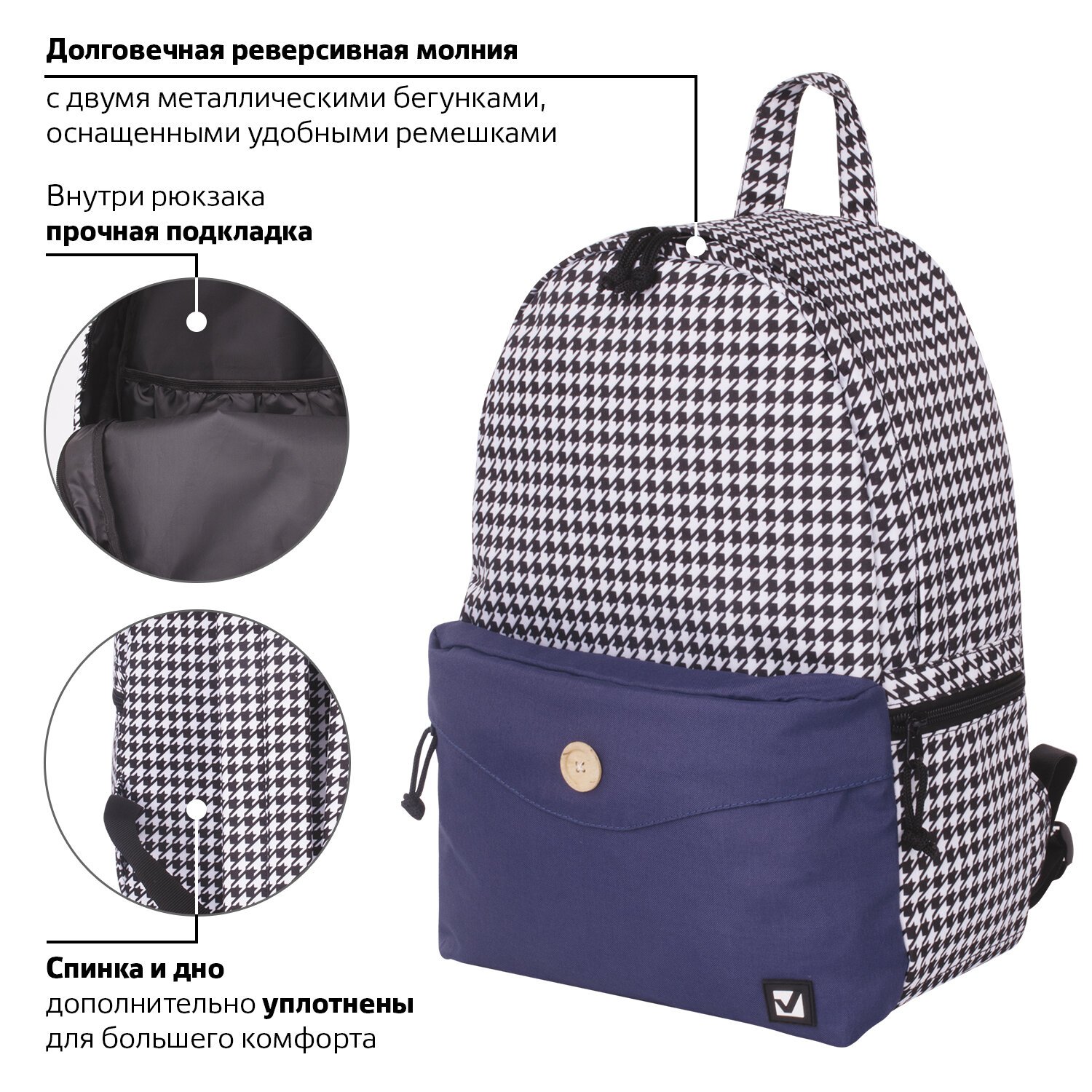 Рюкзак BRAUBERG SYDNEY универсальный, карман с пуговицей, бело-синий, узор клетка, 38х27х12 см, 228840