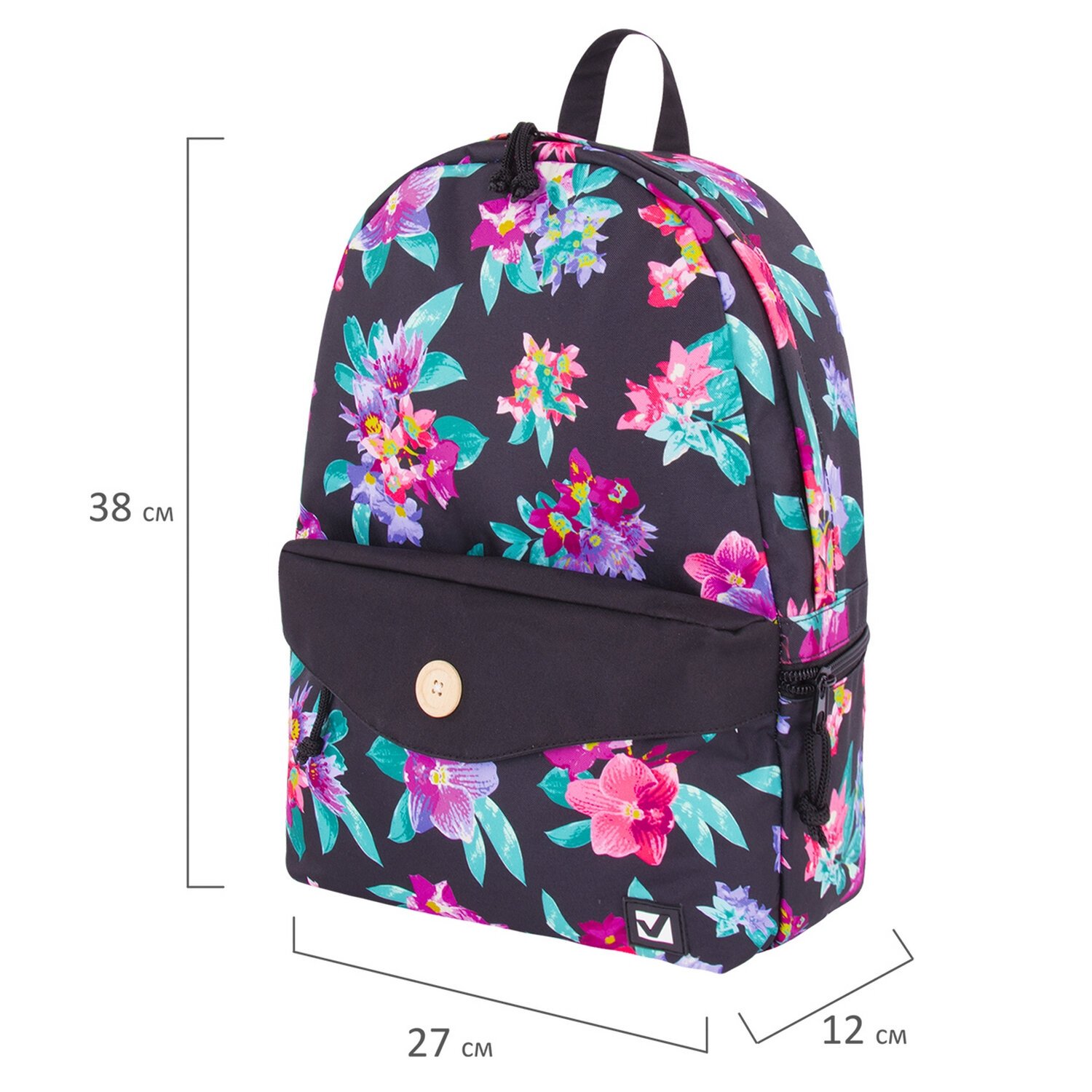 Рюкзак BRAUBERG SYDNEY универсальный, карман с пуговицей, цветочный узор, 38х27х12 см, 228837