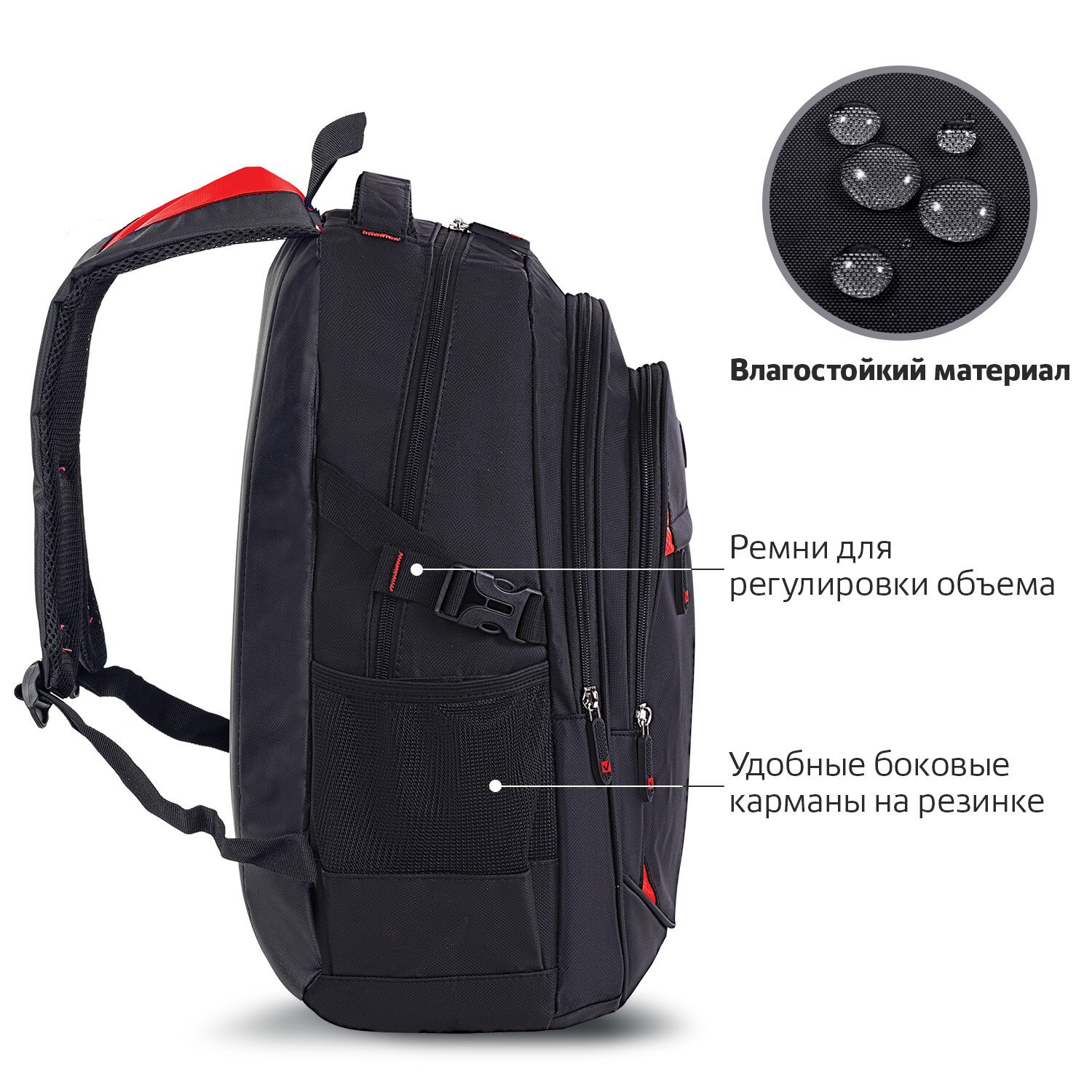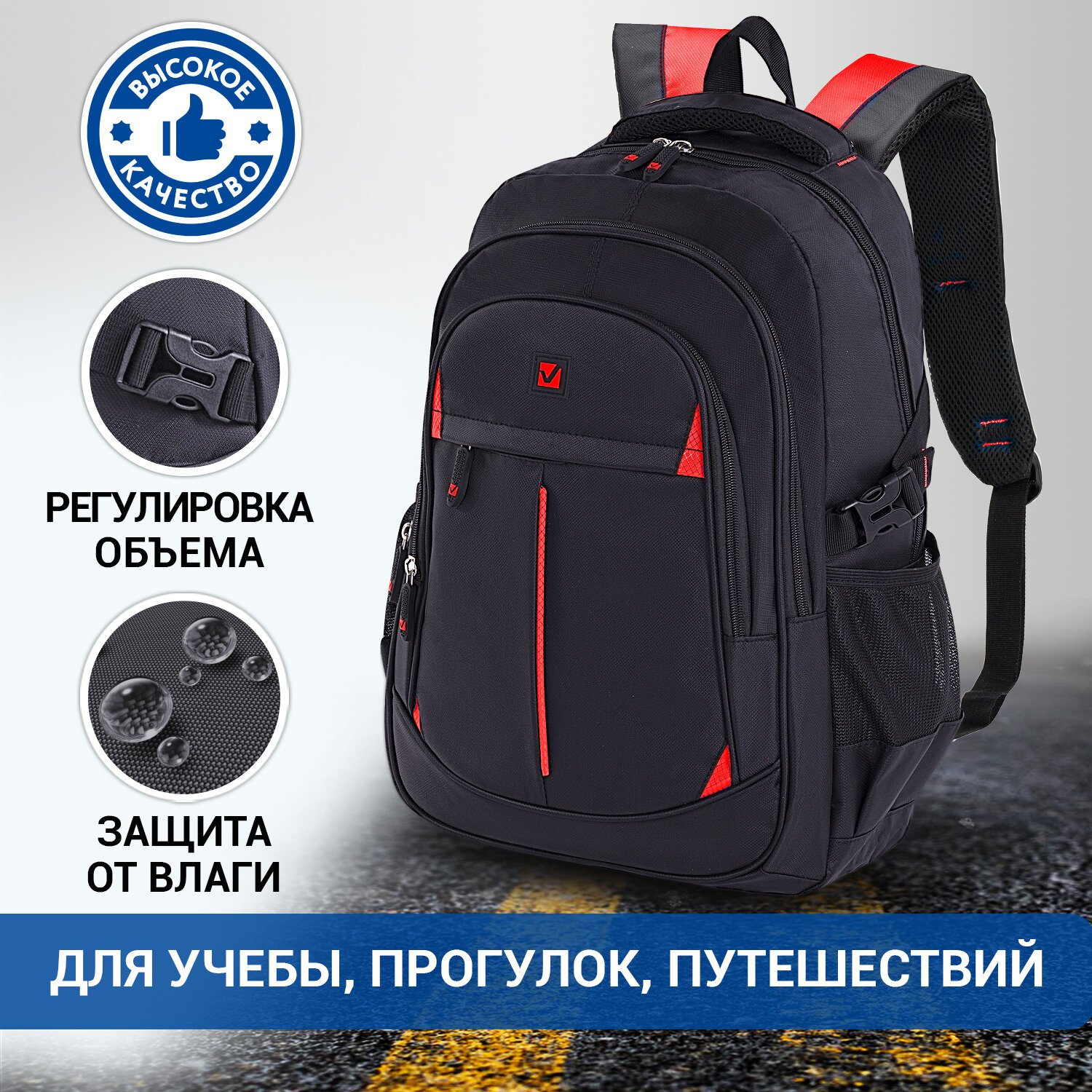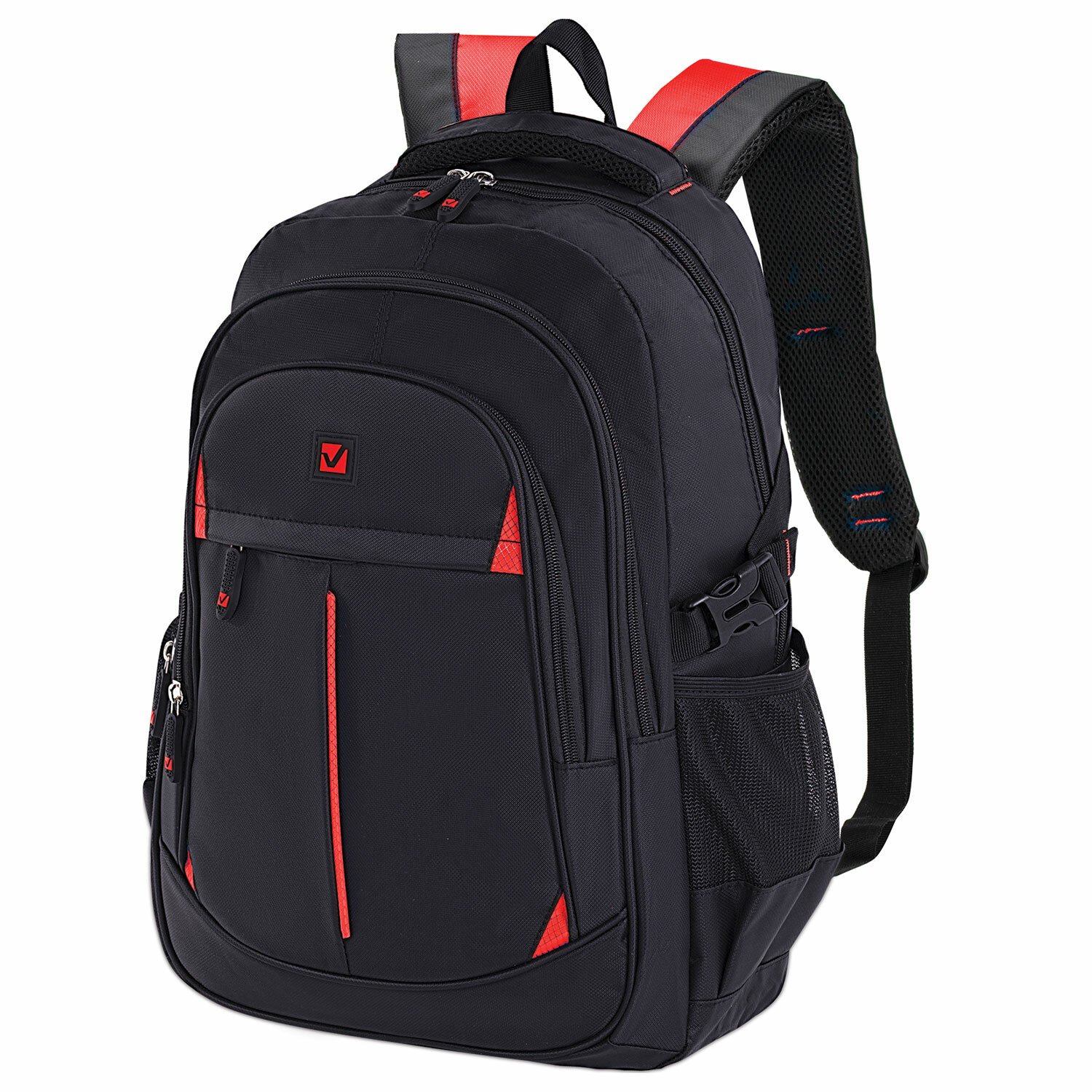 Рюкзак BRAUBERG TITANIUM универсальный, 3 отделения, черный, красные вставки, 45х28х18 см, 226376