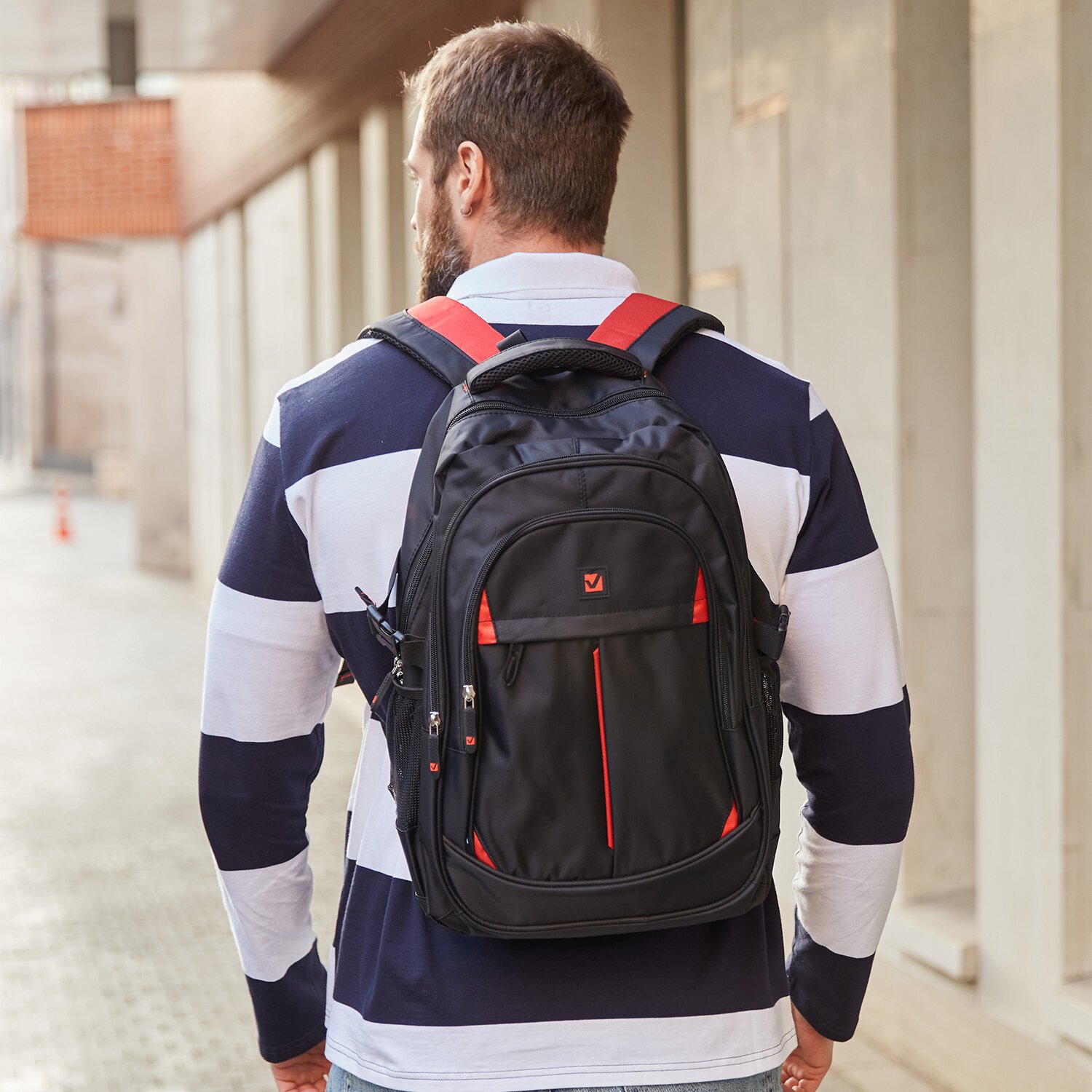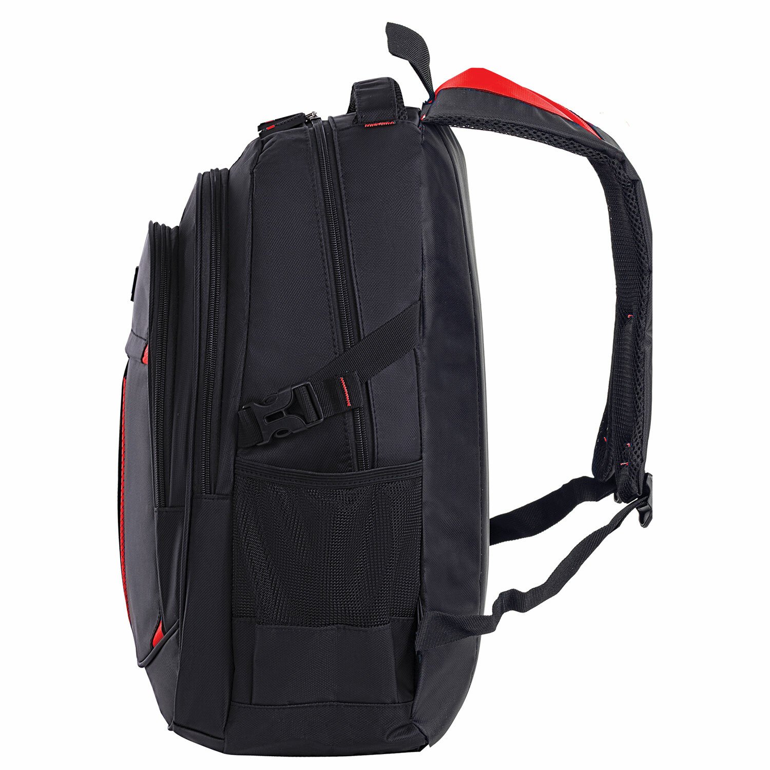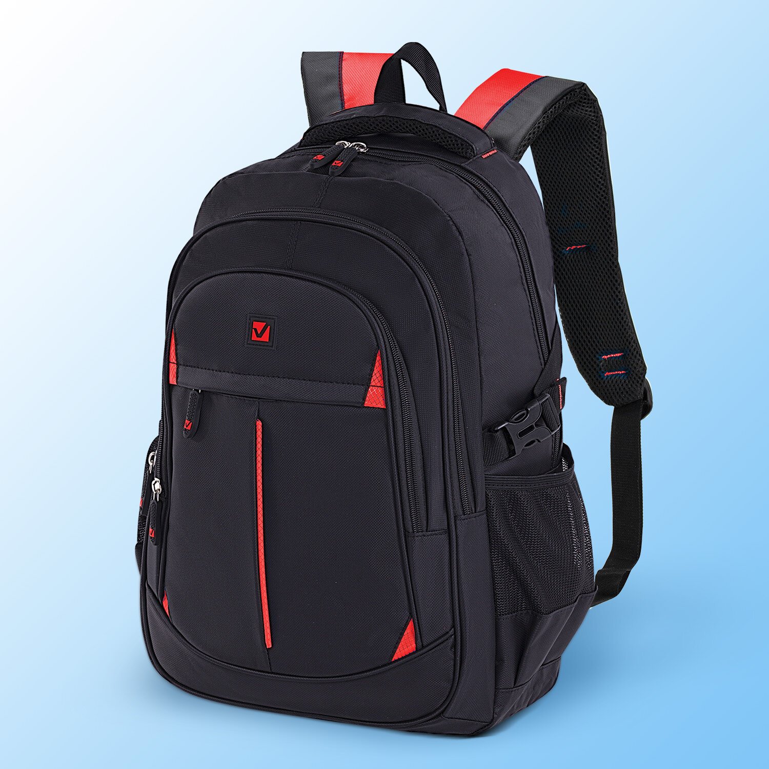 Рюкзак BRAUBERG TITANIUM универсальный, 3 отделения, черный, красные вставки, 45х28х18 см, 226376