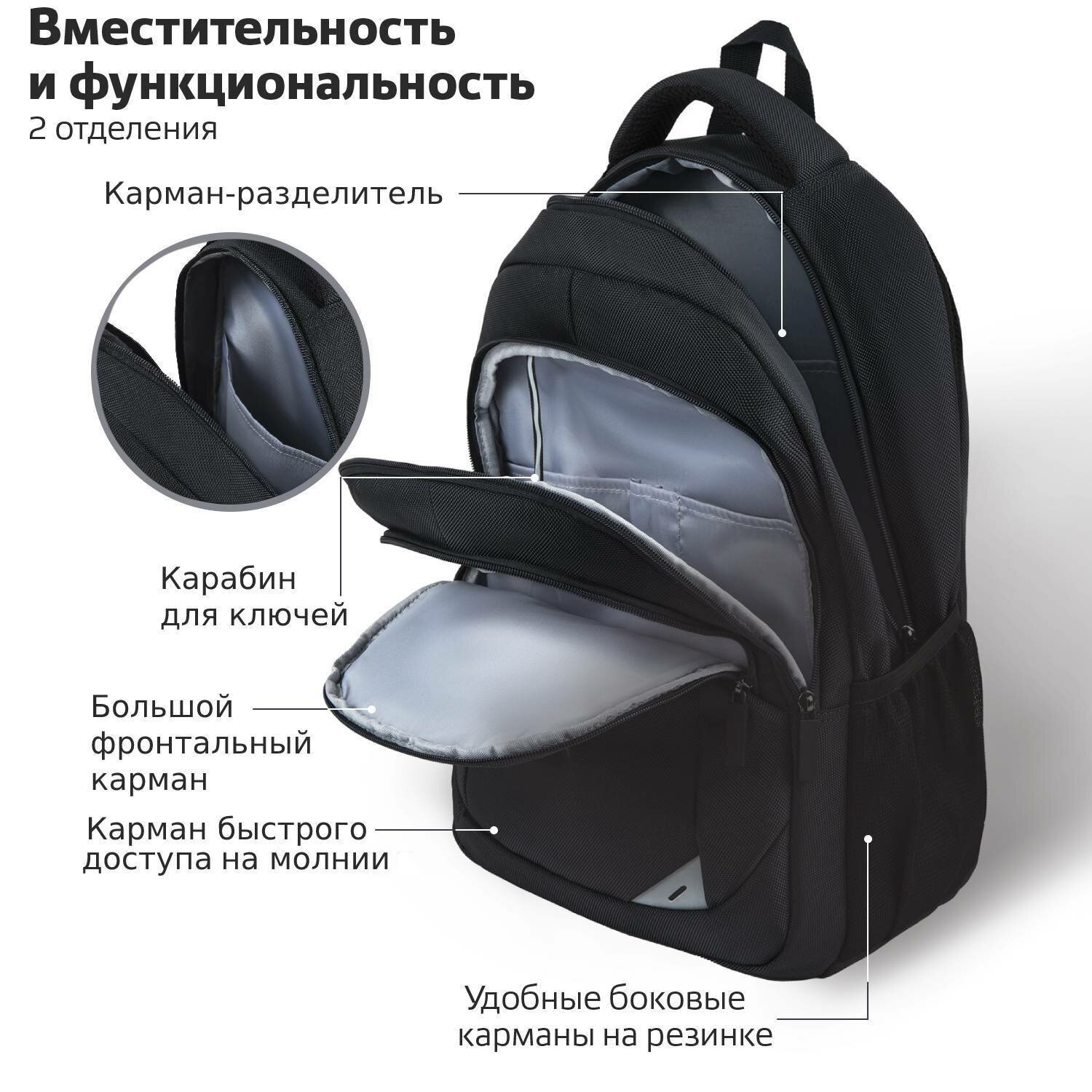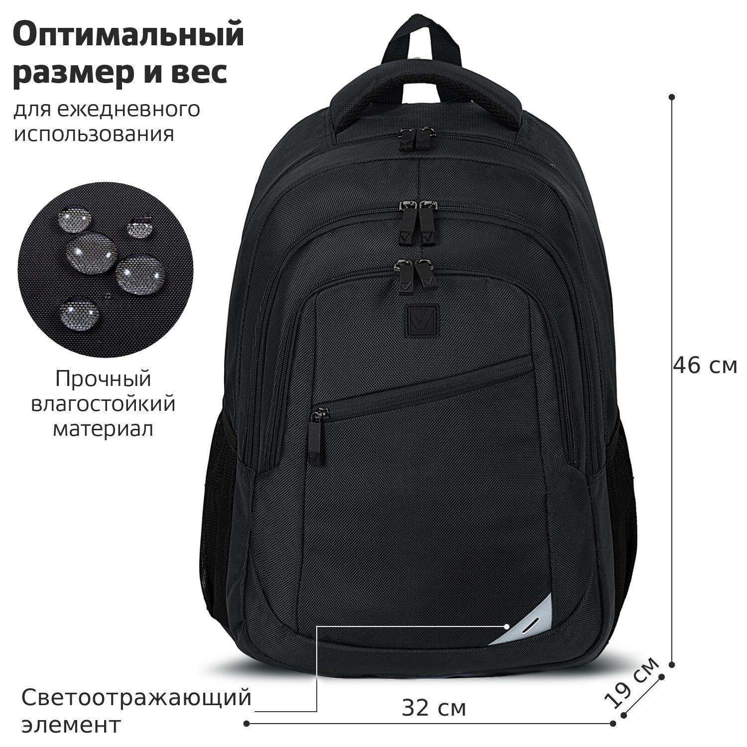 Рюкзак BRAUBERG DELTA универсальный, 3 отделения, "Element", черный, 47х31х16 см, 225289