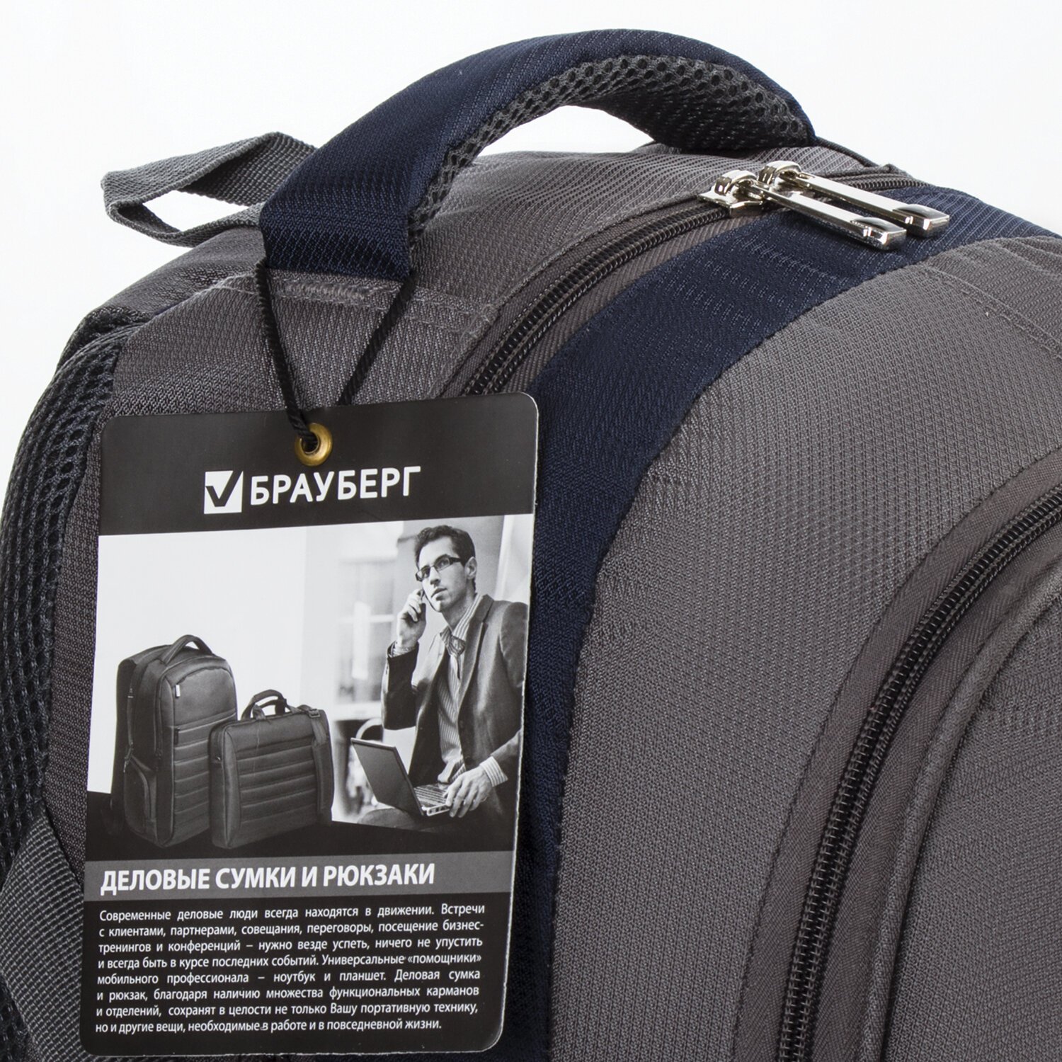 Удобный, вместительный, функциональный рюкзак BRAUBERG для учебы и отдыха. Изготовлен из прочного материала благородного серого цвета с темно-синими вставками.