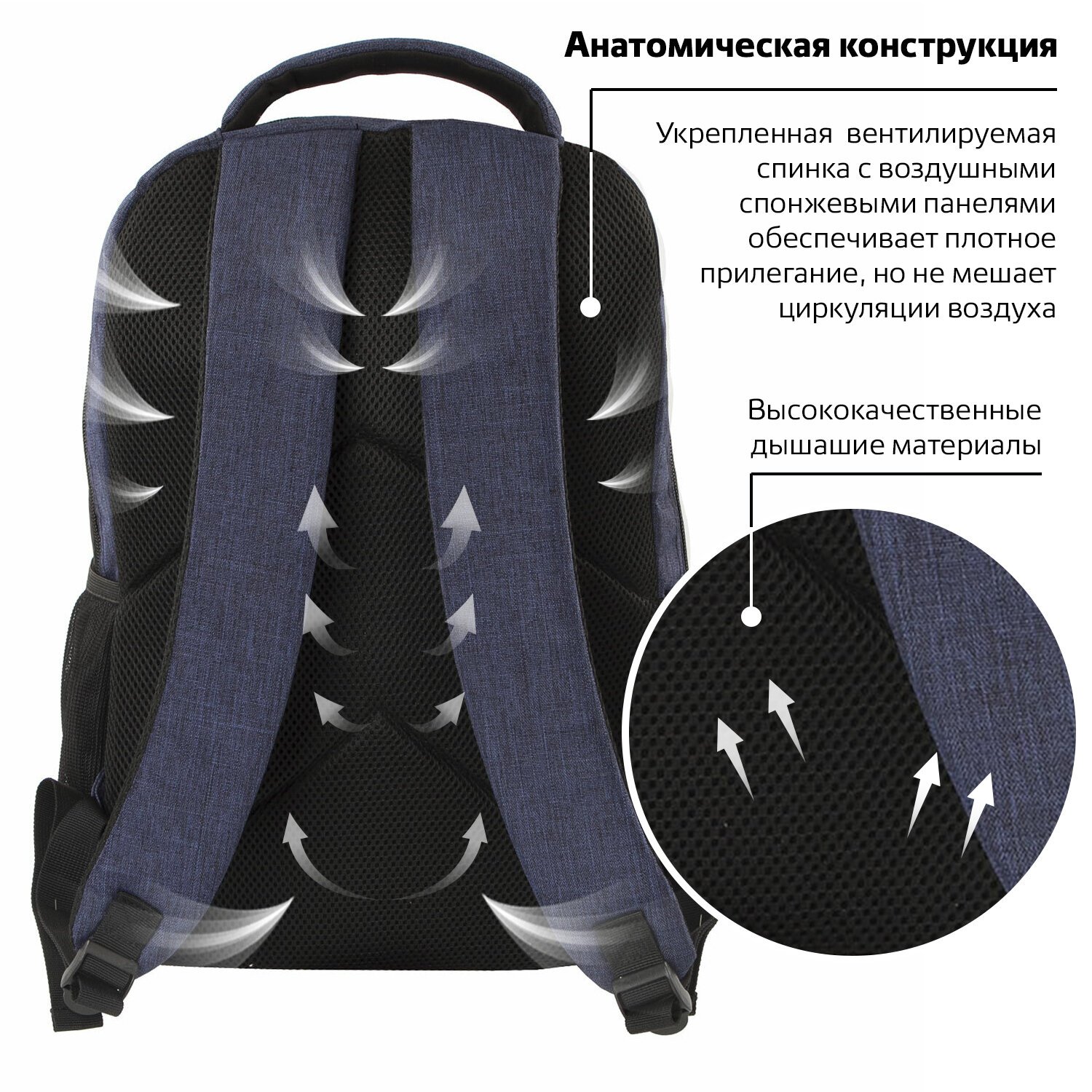 Рюкзак BRAUBERG URBAN универсальный, с отделением для ноутбука, USB-порт, "Denver", синий, 46х30х16 см, 229893