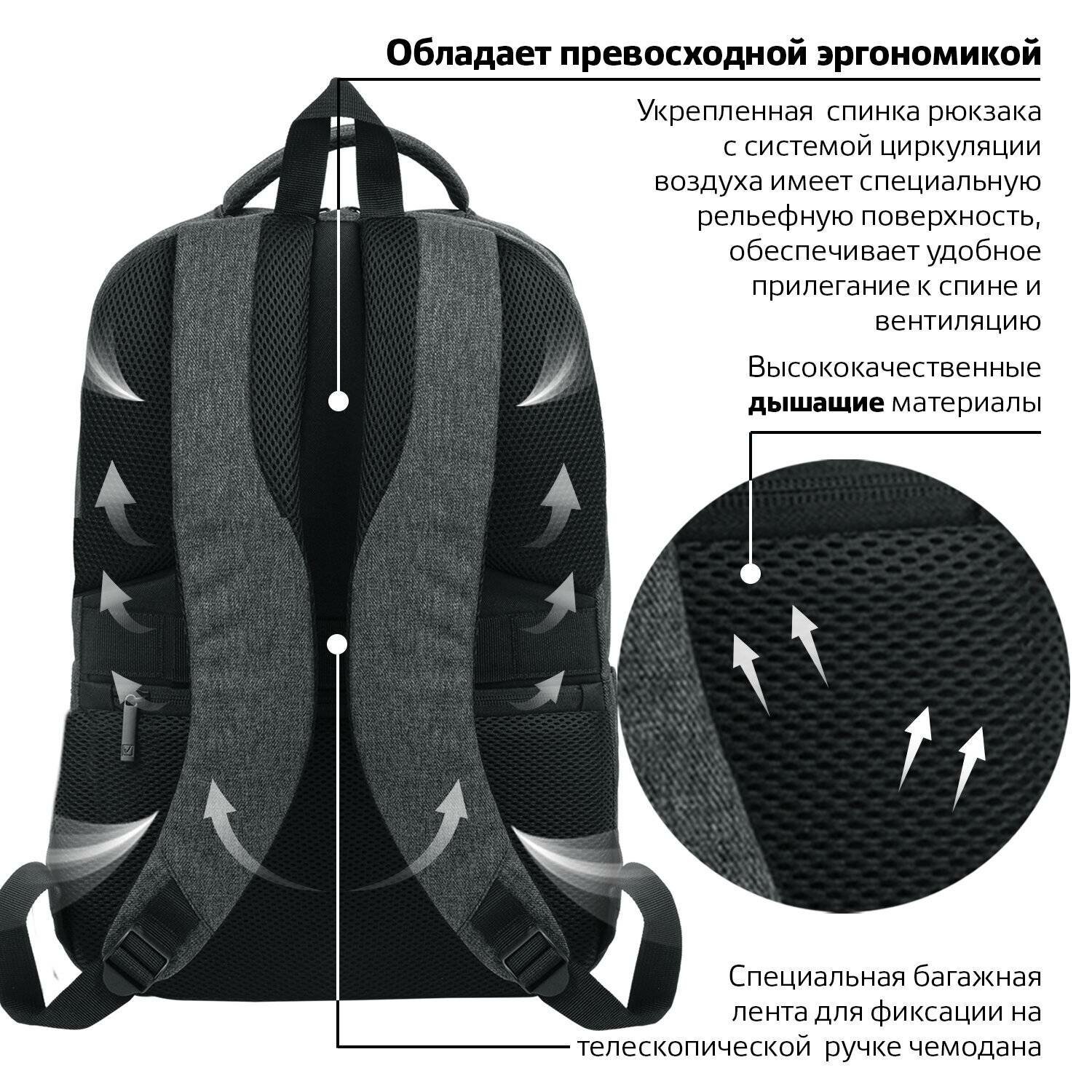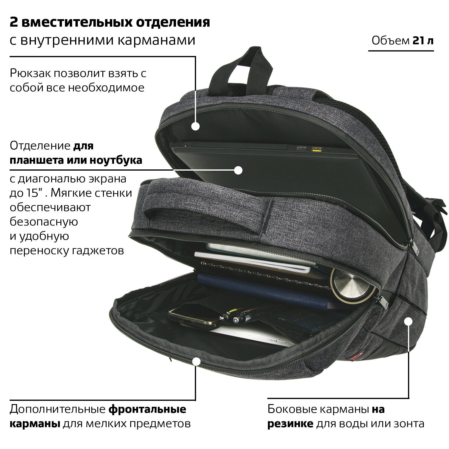 Рюкзак BRAUBERG URBAN универсальный, с отделением для ноутбука, "Houston", темно-серый, 45х31х15 см, 229895
