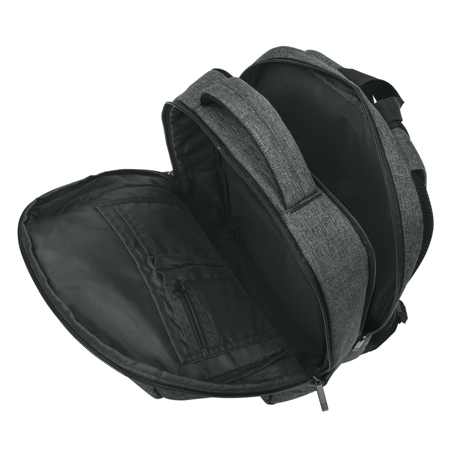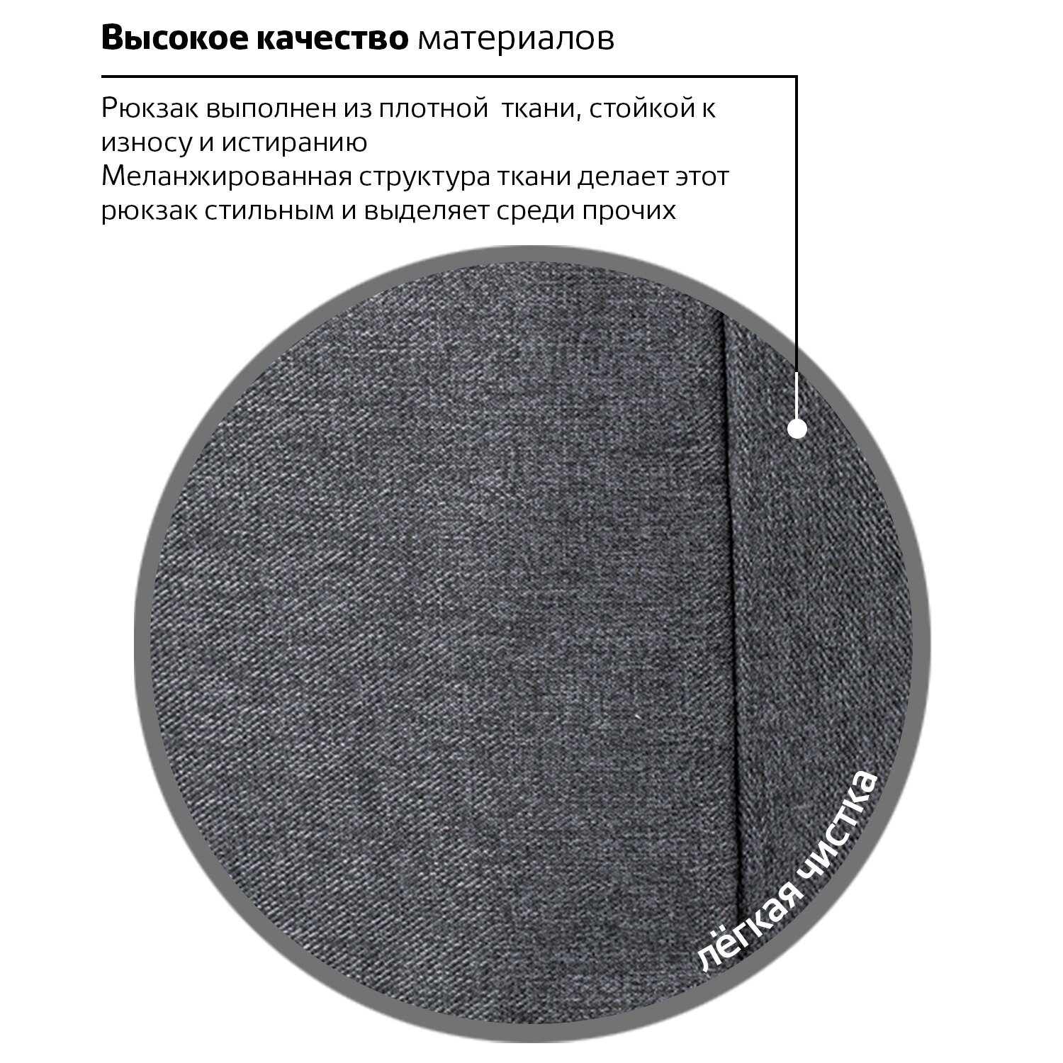 Меланжированная структура ткани делает этот рюкзак стильным и выделяет среди прочих. Рюкзак изготовлен из надежного практичного материала - полиэстера.