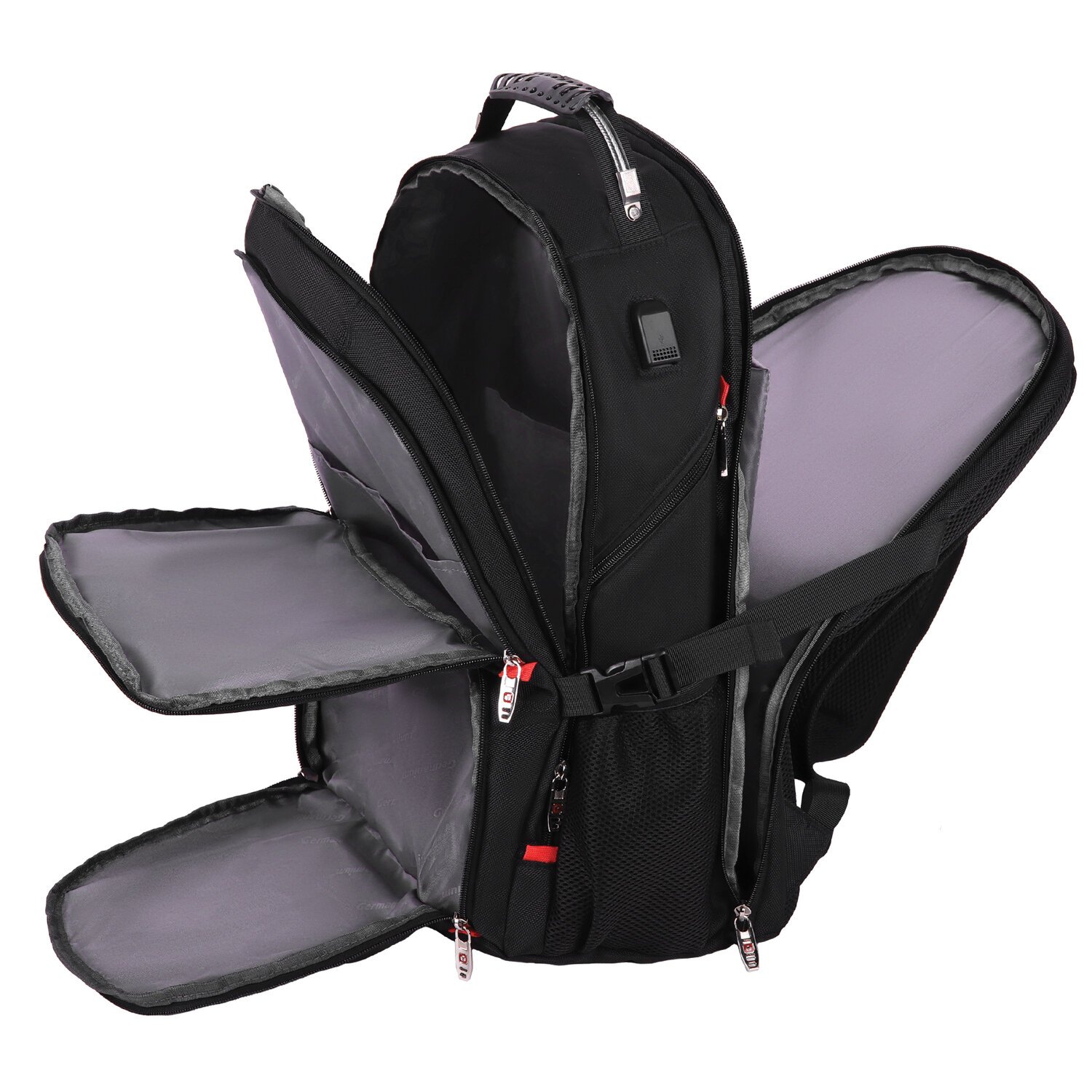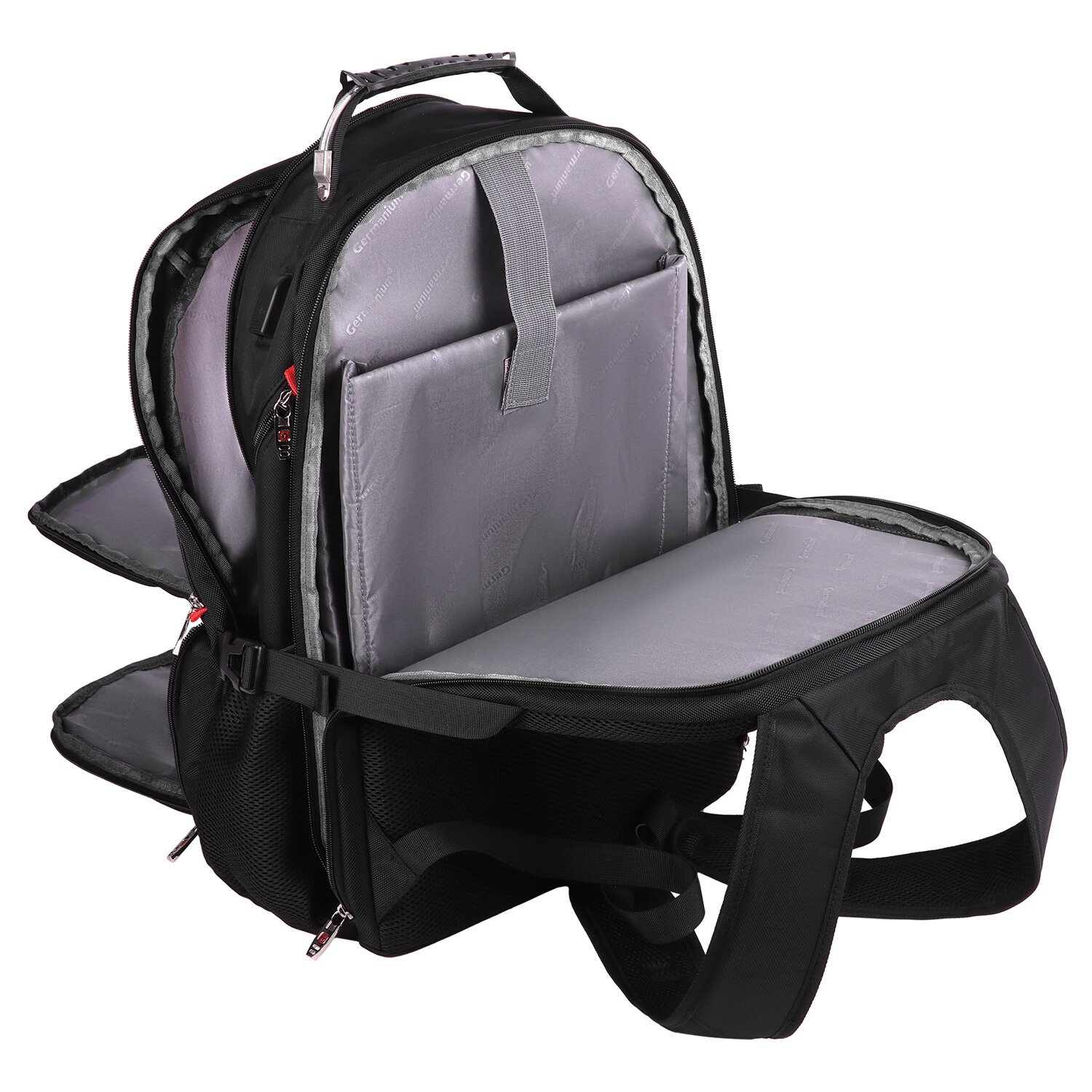 Рюкзак GERMANIUM UPGRADE Max, 3 отделения, отделение для ноутбука, USB-порт, UP-5, черный, 49х34х24 см, 271669