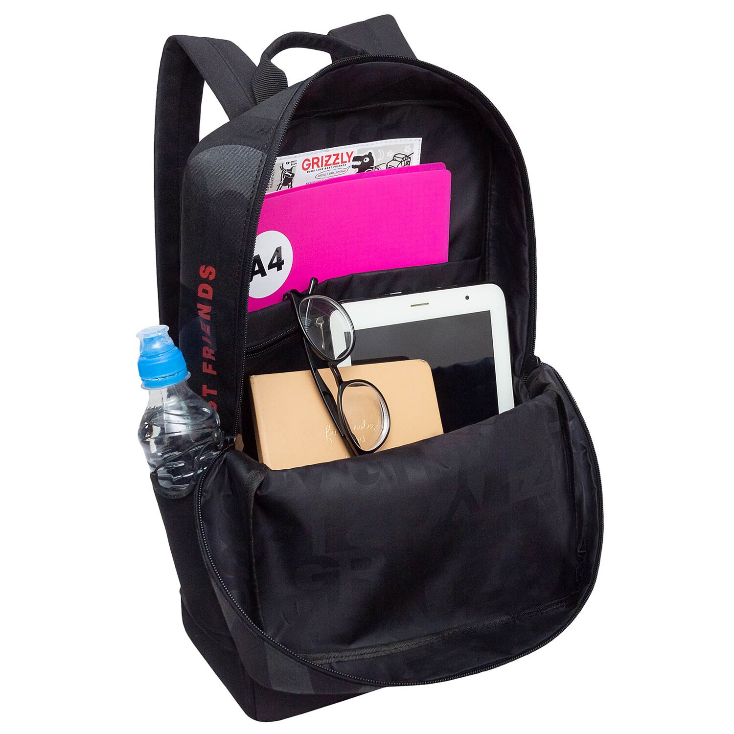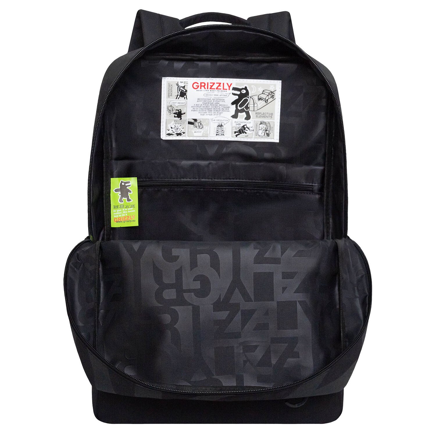 Рюкзак GRIZZLY, карман-антивор, TOTAL BLACK, 42х28х12 см, RQL-513-2/3