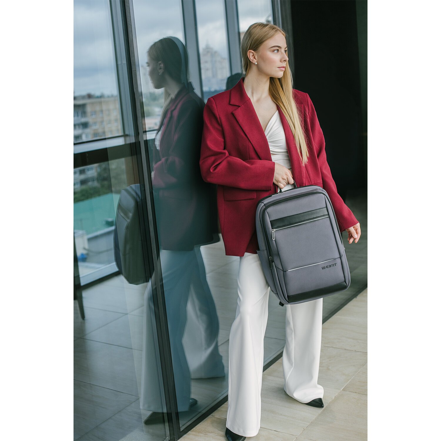 Два вместительных отделения позволят упорядоченно разложить большое количество вещей различных размеров, в зависимости от целей использования рюкзака. Рюкзак имеет внутренний карман и карман-органайзер, в которые с легкостью можно поместить как письменные принадлежности, так и аксессуары и личные вещи. Боковой карман на молнии в открытом виде позволяет удобно разместить бутылочку, термос или зонт, а в закрытом - сохраняет идеальный лаконичный вид рюкзака. Важная деталь – это отделение для ноутбука с диагональю экрана до 15,6". Плотные стенки и дно защитят гаджет от механических повреждений, а эластичная лента на липучке надежно его зафиксирует.