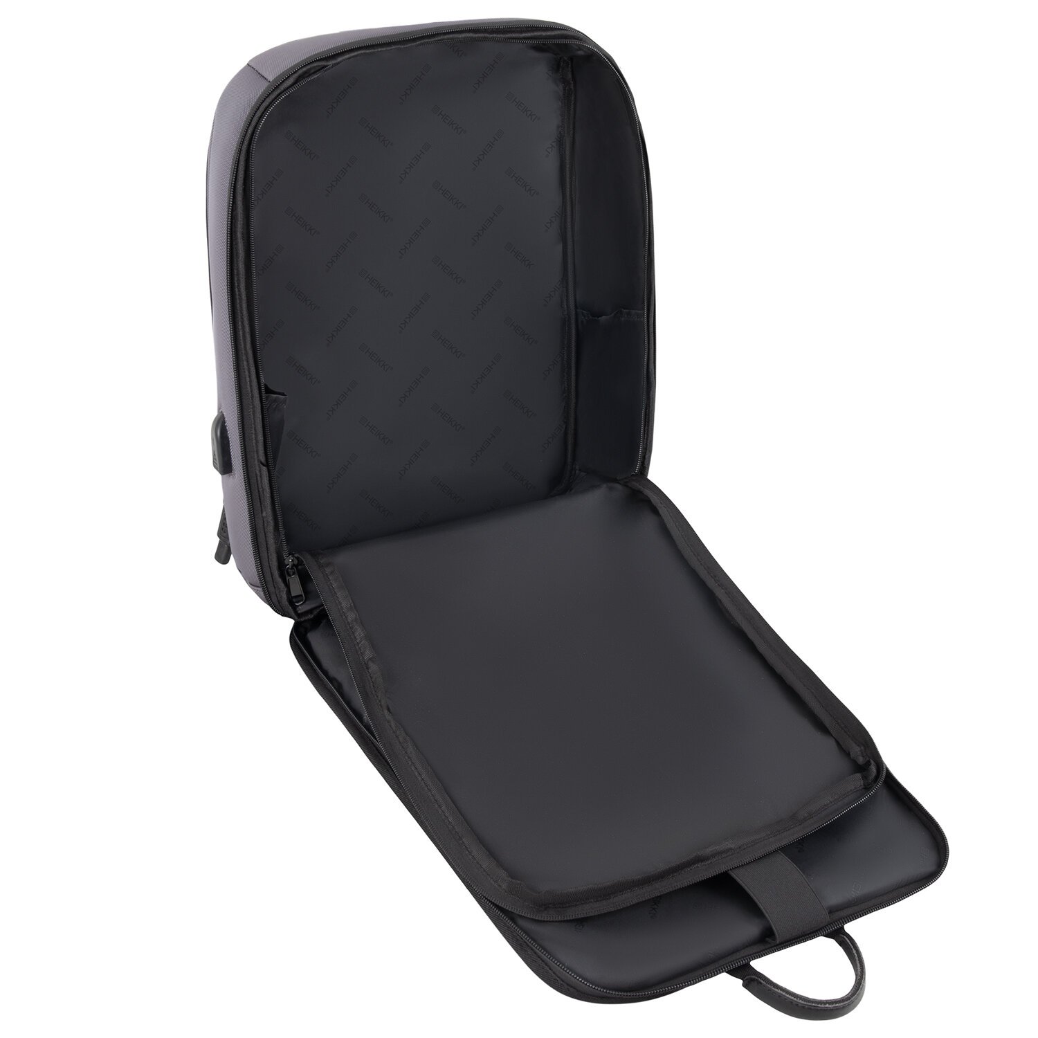 Рюкзак оснащен USB-портом: можно положить портативный аккумулятор внутрь рюкзака, а снаружи подключить кабель к смартфону или планшету, что позволит продолжить использовать устройство в дороге.