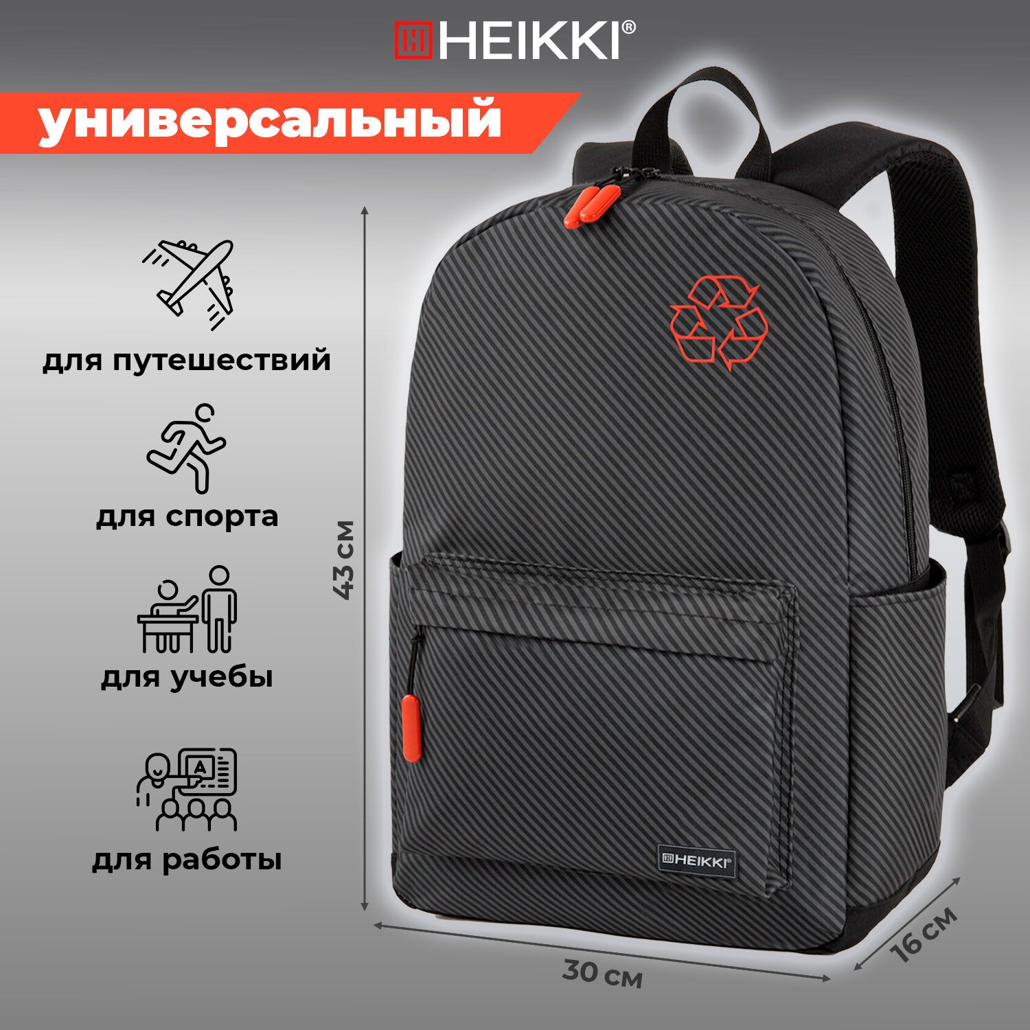 Рюкзак HEIKKI ENERGETIC (ХЕЙКИ) универсальный, эргономичный, Recycle, черно-серый, 43х30х16 см, 272532