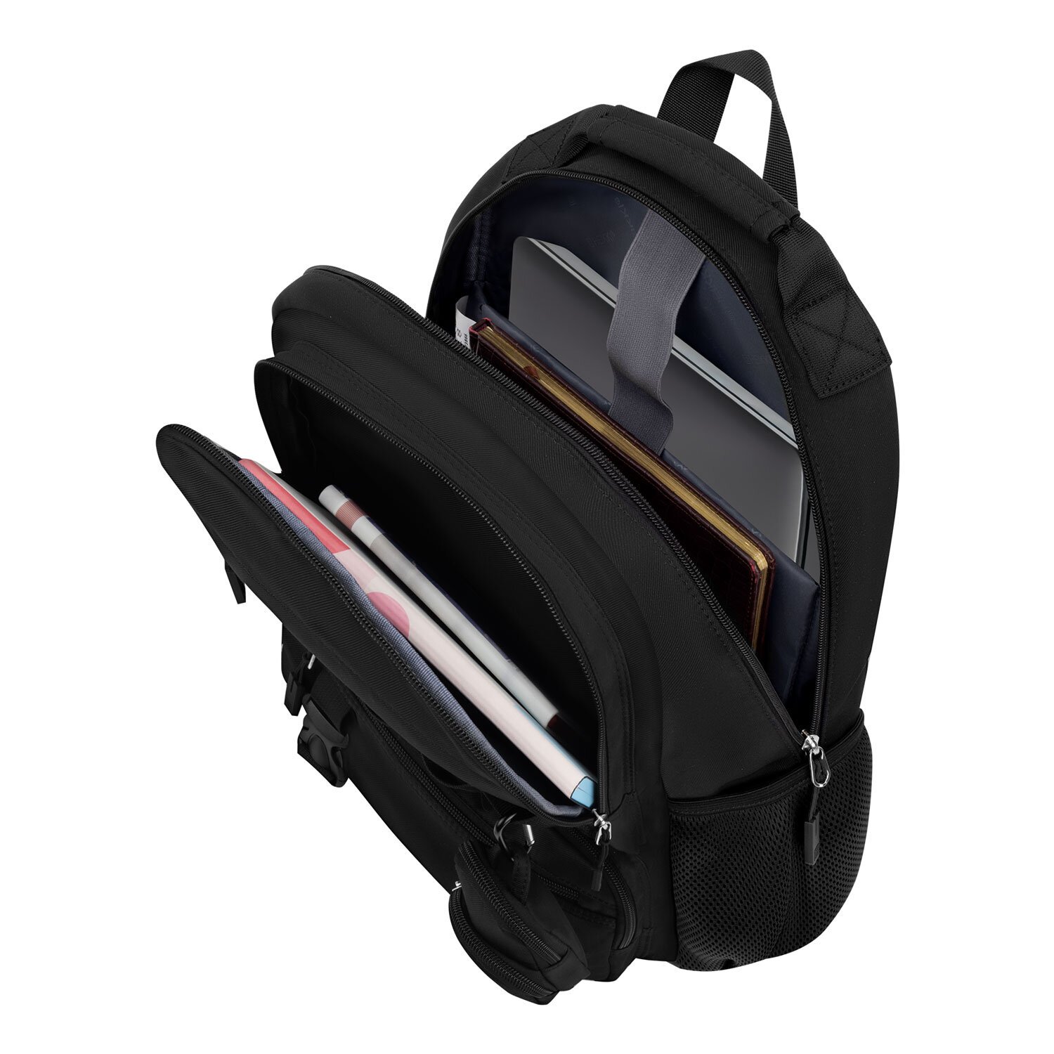 Одно вместительное отделение и множество карманов позволят упорядоченно разложить большое количество вещей различных размеров, в зависимости от целей использования рюкзака. Важная деталь – это отделение для ноутбука с диагональю экрана до 15,6". Плотные стенки и дно защитят гаджет от механических повреждений, а эластичная лента на липучке надежно его зафиксирует. В основном отделении имеются также карман на молнии и карман-органайзер для удобного размещения как письменных принадлежностей, так и документов, аксессуаров и других личных вещей.