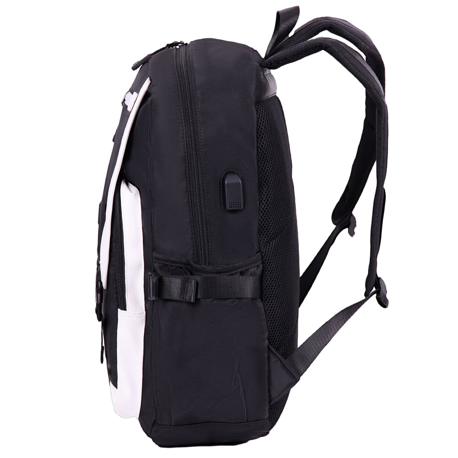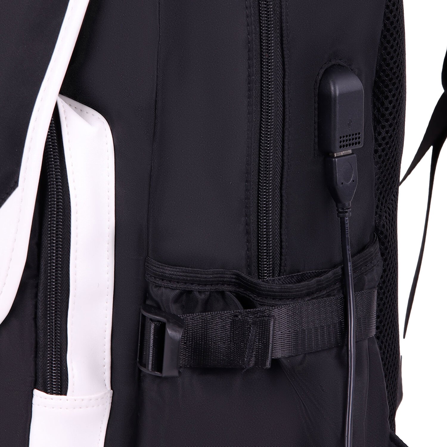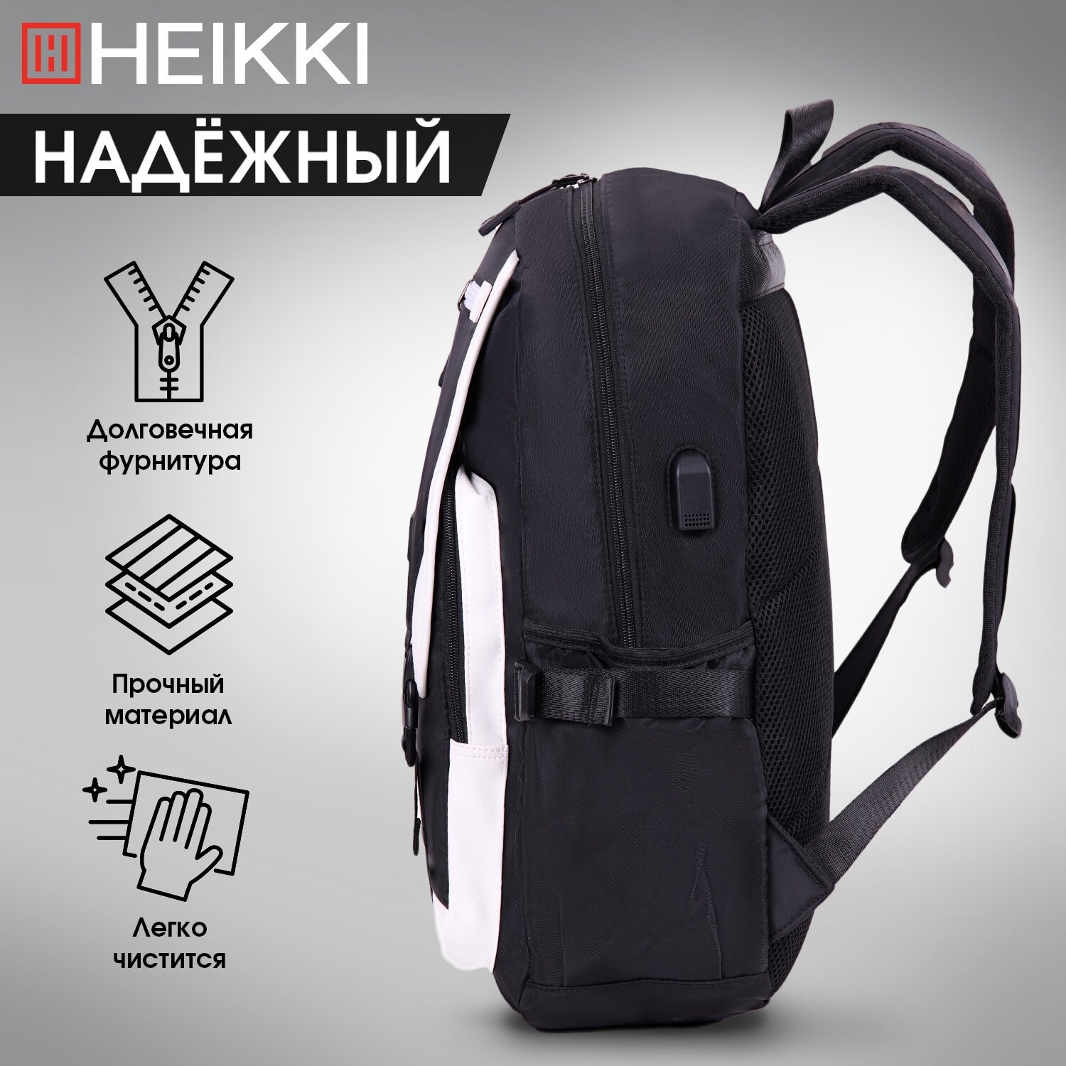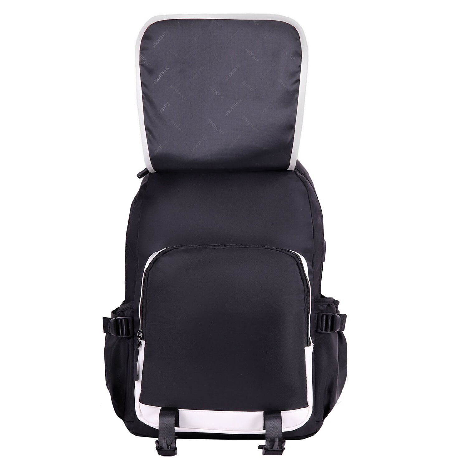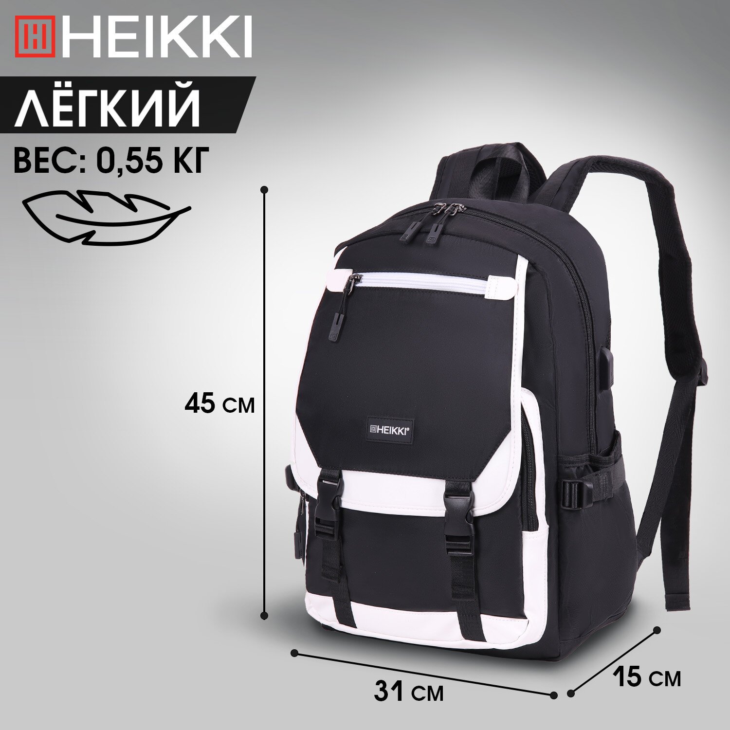 Рюкзак HEIKKI FUSION (ХЕЙКИ) универсальный, USB-порт, черный с белыми вставками, 45х31х15 см, 272578