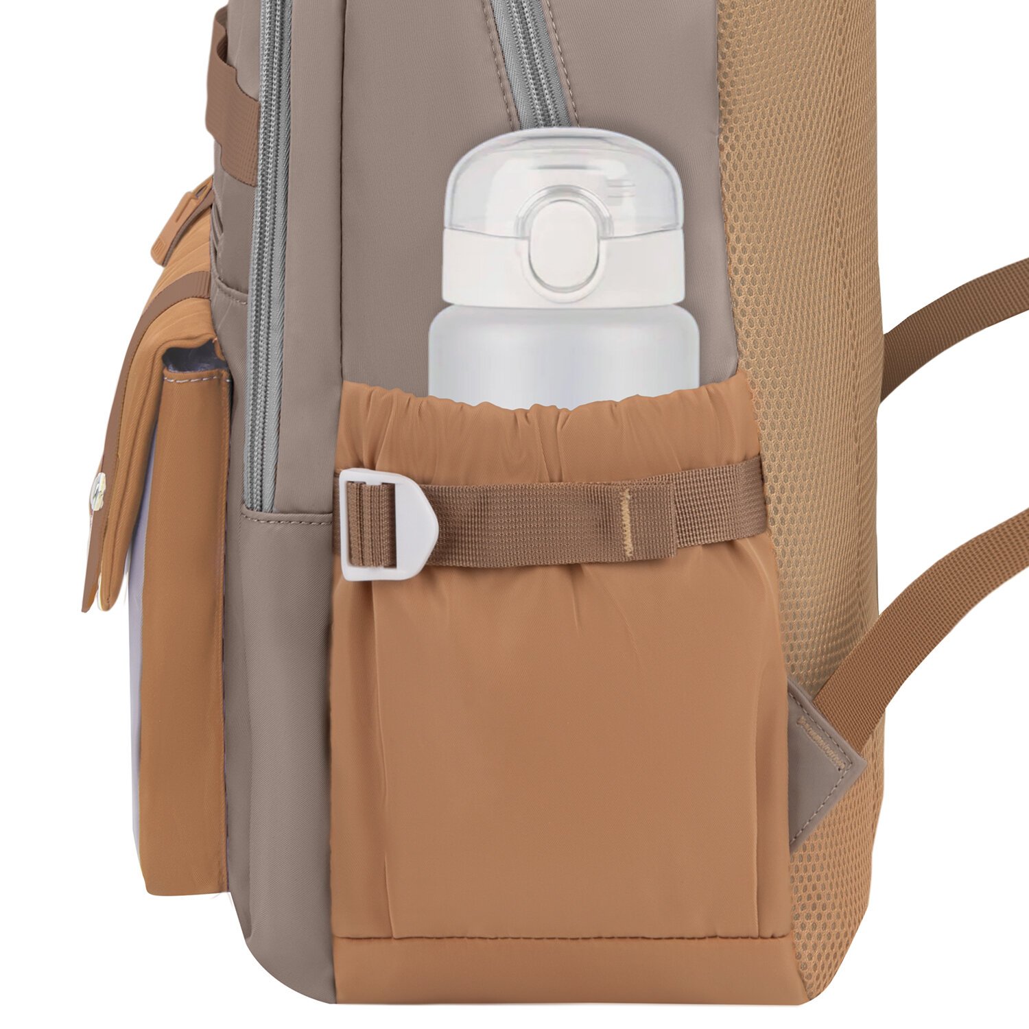 Два вместительных отделения позволят упорядоченно разложить большое количество вещей различных размеров, в зависимости от целей использования рюкзака. Рюкзак имеет 2 передних кармана, внутренний карман и карман-органайзер, в которые с легкостью можно поместить как письменные принадлежности, так и аксессуары и личные вещи, а в боковых карманах на резинке удобно разместить бутылочку, термос или зонт. Большой уплотненный внутренний карман подойдет для ноутбука или планшета и обеспечит его сохранность.