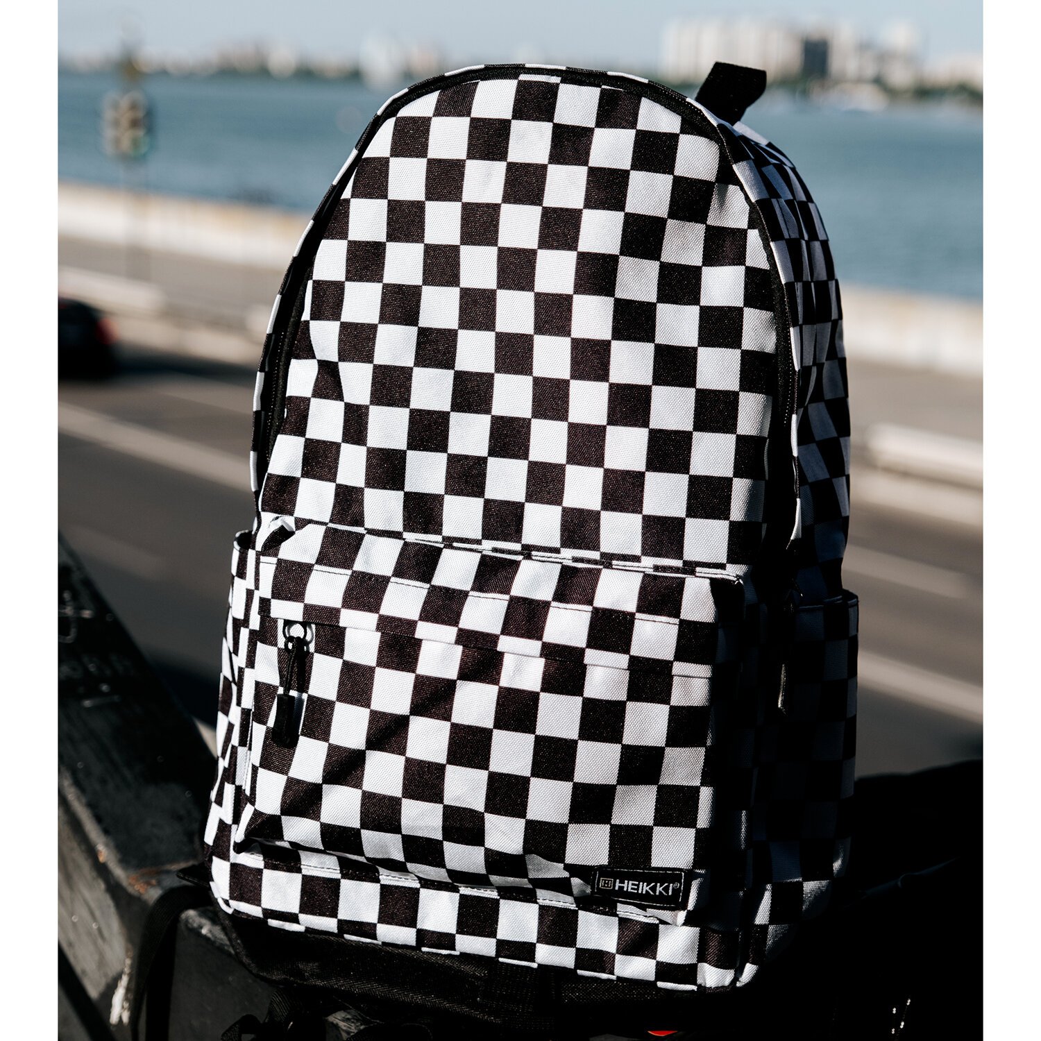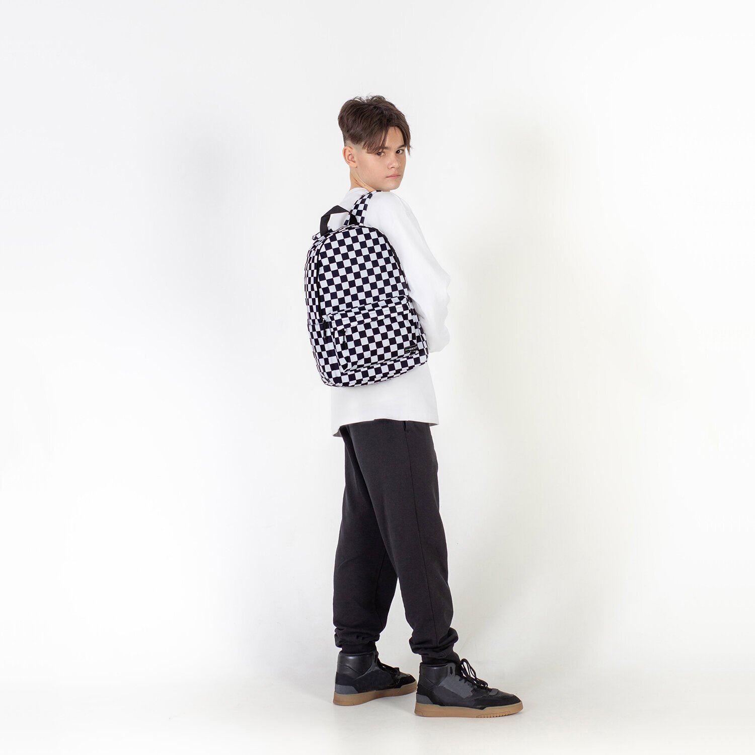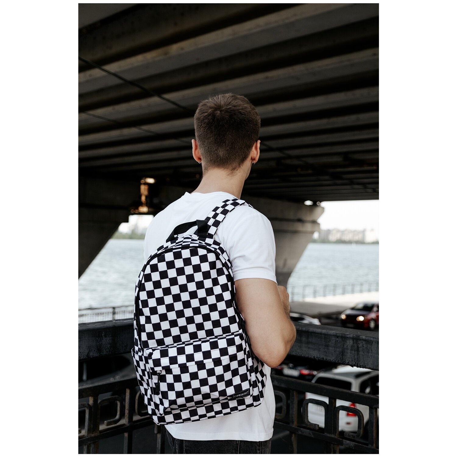 Современный принт в виде черно-белой клетки делает этот рюкзак оригинальным и в то же время универсальным,