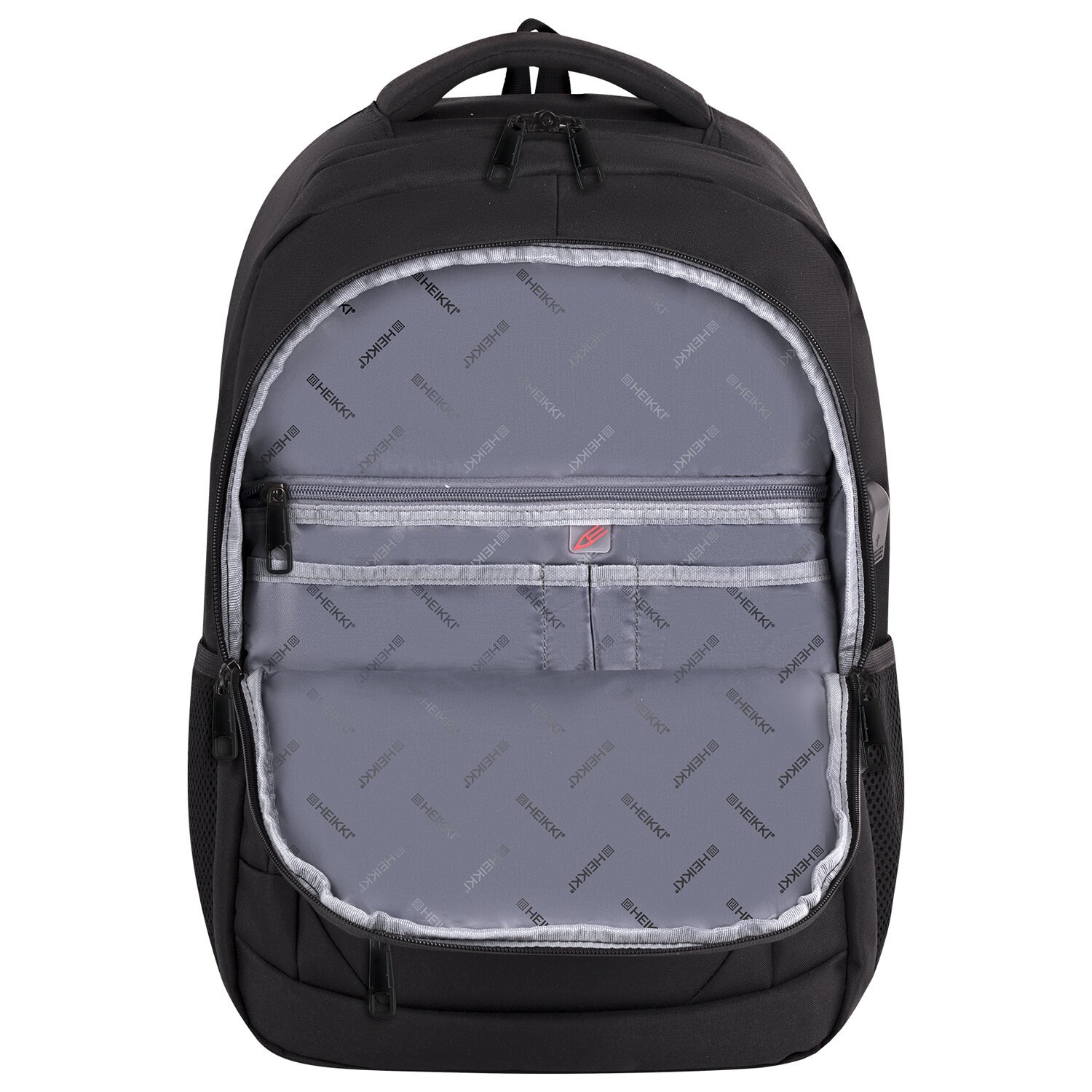 Рюкзак HEIKKI FUSION (ХЕЙКИ) универсальный, USB-порт, черный с белыми вставками, 45х31х15 см, 272578