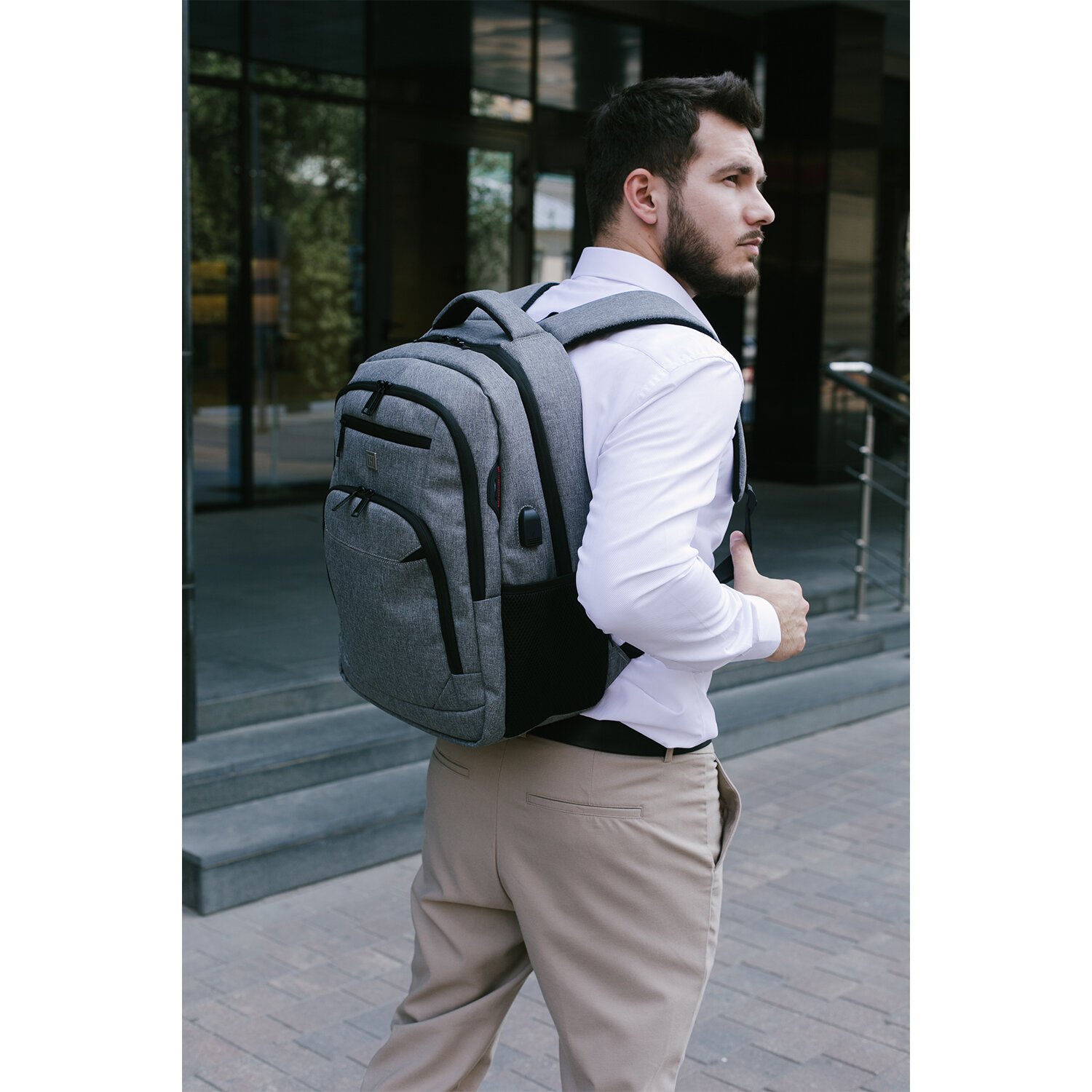 Рюкзак BRAUBERG URBAN универсальный, с отделением для ноутбука, USB-порт, "Charge", серый, 46х31х15 см, 271655