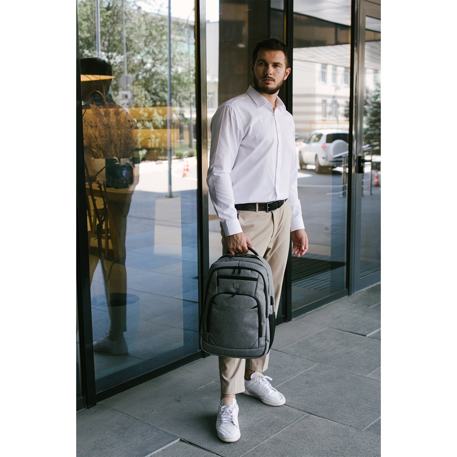 Его габариты 46x31x19 см и вес около 980 грамм обеспечивают вместительность без лишней тяжести, а серый цвет вписывается в любой образ. Материал изделия выполнен из качественного водостойкого полиэстера, что позволяет защитить вещи от влаги и загрязнений.