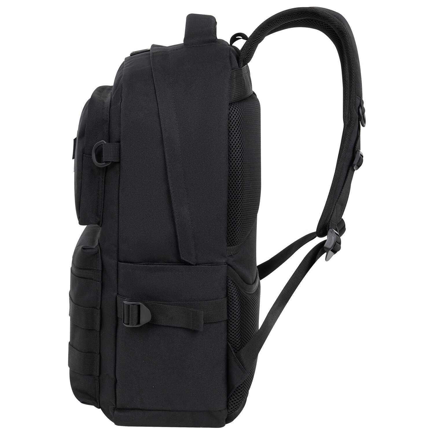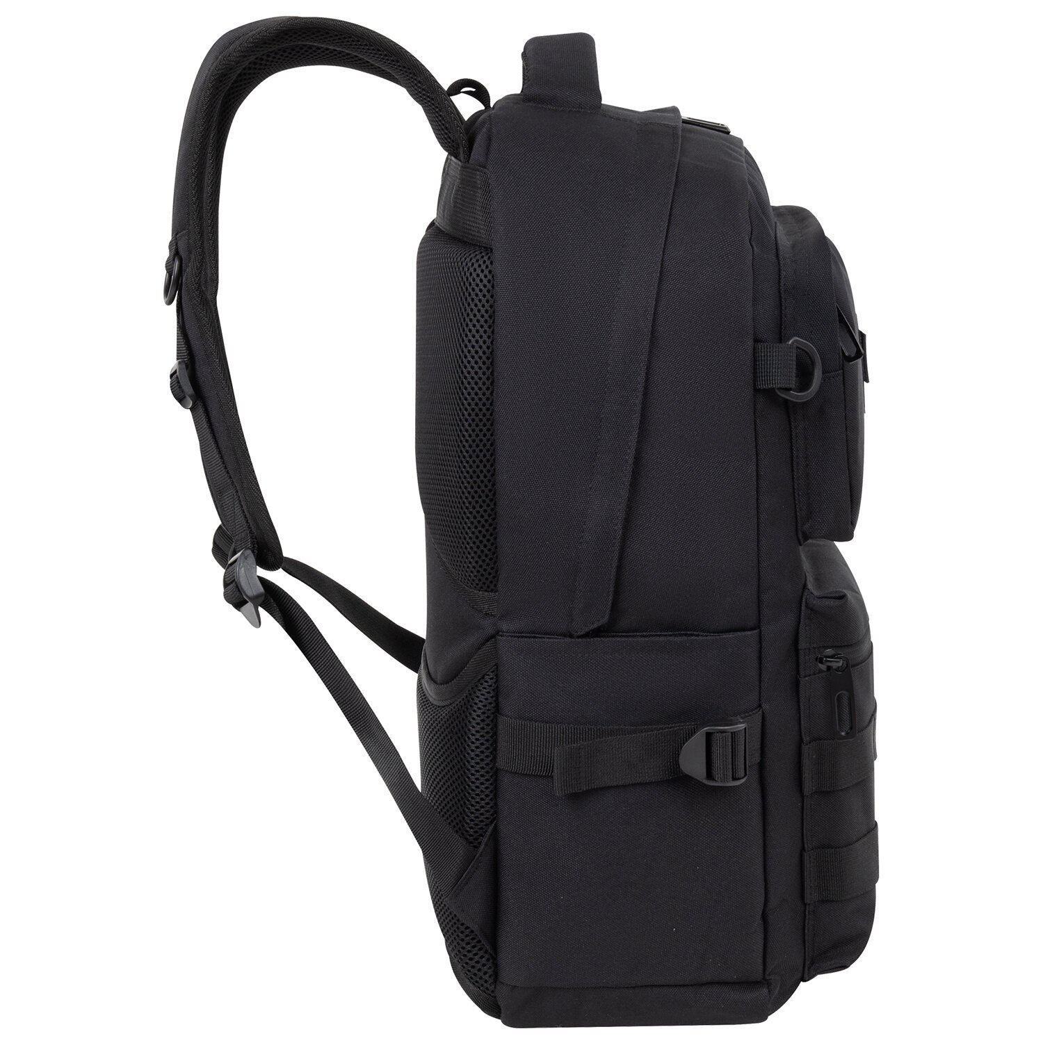Важная деталь – это отделение для ноутбука с диагональю экрана до 15,6". Плотные стенки и дно защитят гаджет от механических повреждений, а эластичная лента на липучке надежно зафиксирует ноутбук. В отделении расположен карман из сетки на молнии, в котором можно разместить небольшие предметы, такие как наушники, ключи. В боковых карманах можно разместить бутылочку, термос или зонт. Боковые части рюкзака имеют пластиковые пряжки для крепления различных аксессуаров.