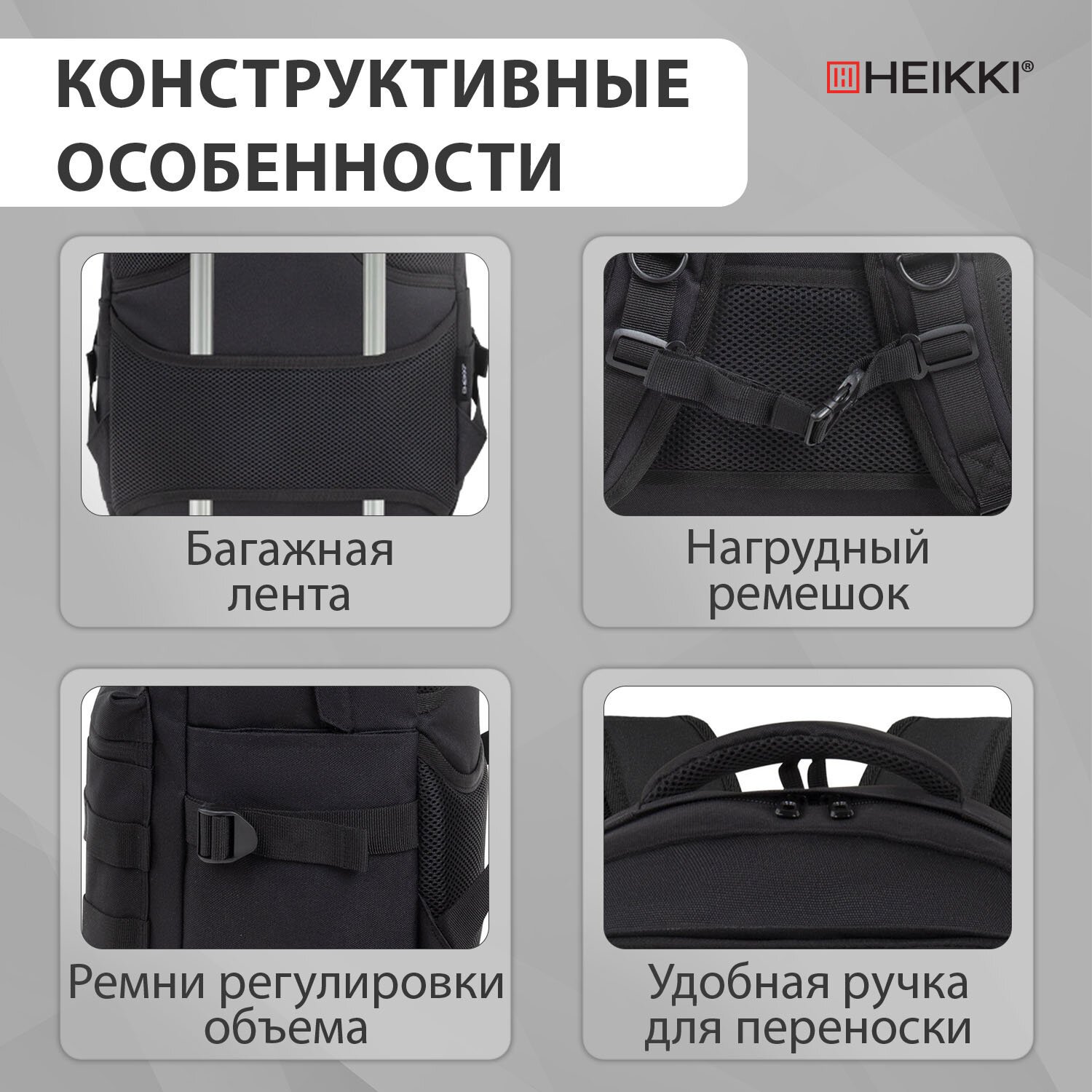 Рюкзак HEIKKI STRATEGY (ХЕЙКИ) универсальный, отделение для ноутбука, багажная лента, черный, 46х31х13 см, 272583