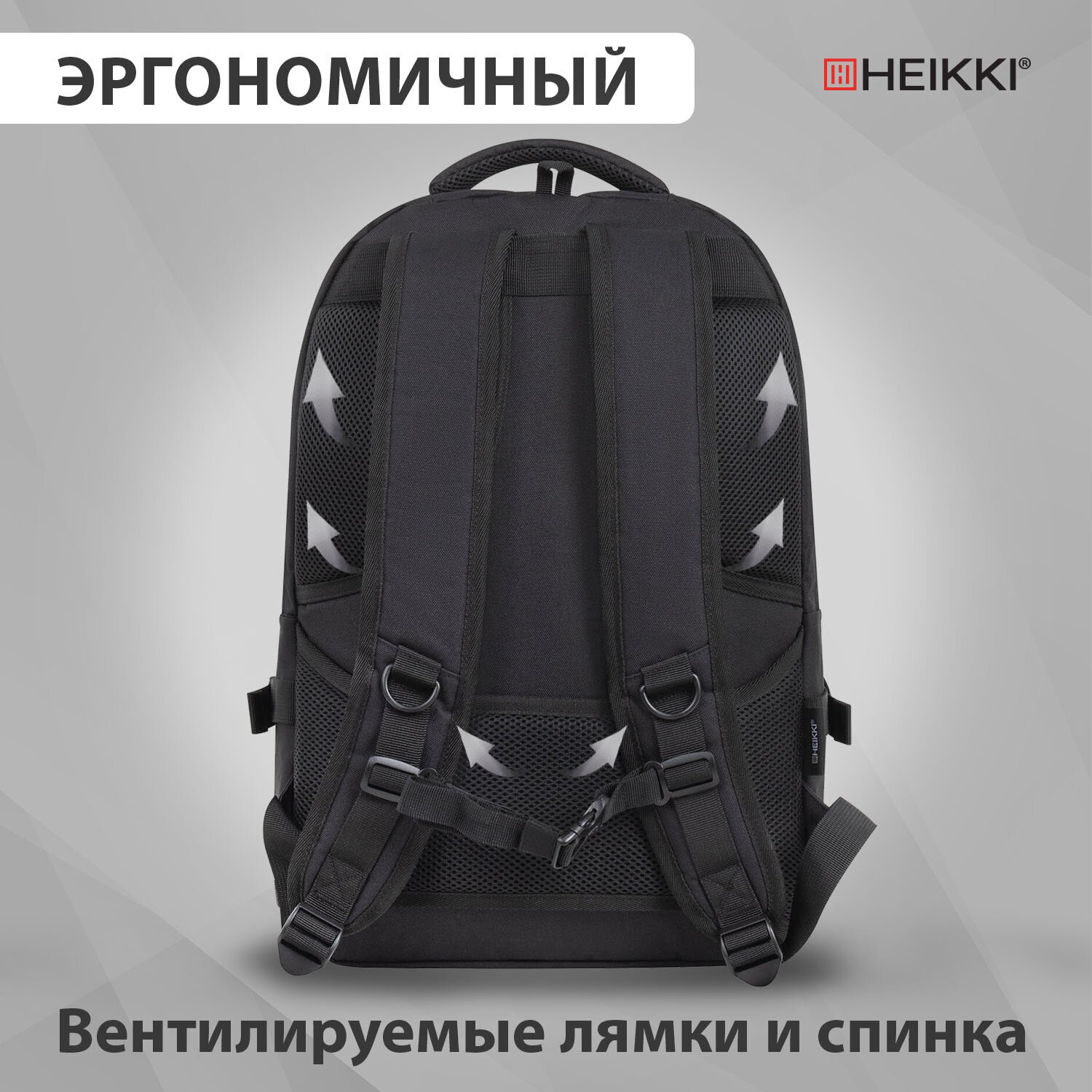 Рюкзак HEIKKI HIGH TECH (ХЕЙКИ) с отделением для ноутбука, черный, 43x28x12 см, 272589