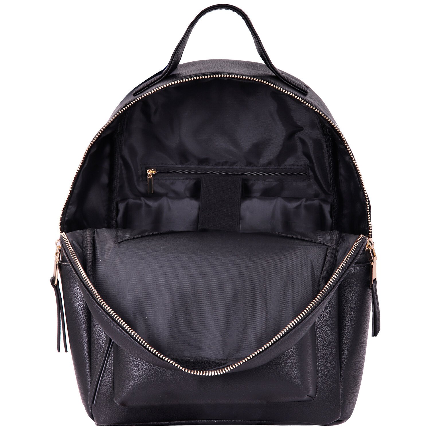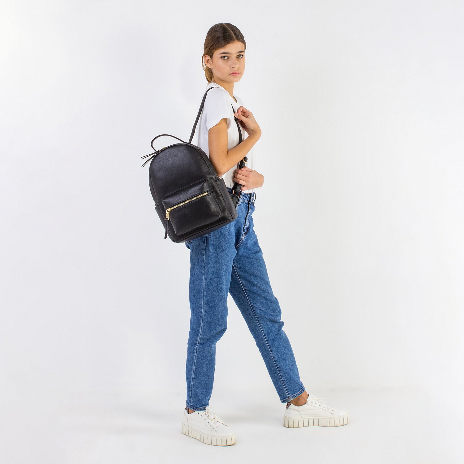 Металлическая фурнитура выполнена в благородном золотистом цвете, стильные бегунки добавляют оригинальности в лаконичный дизайн рюкзака.