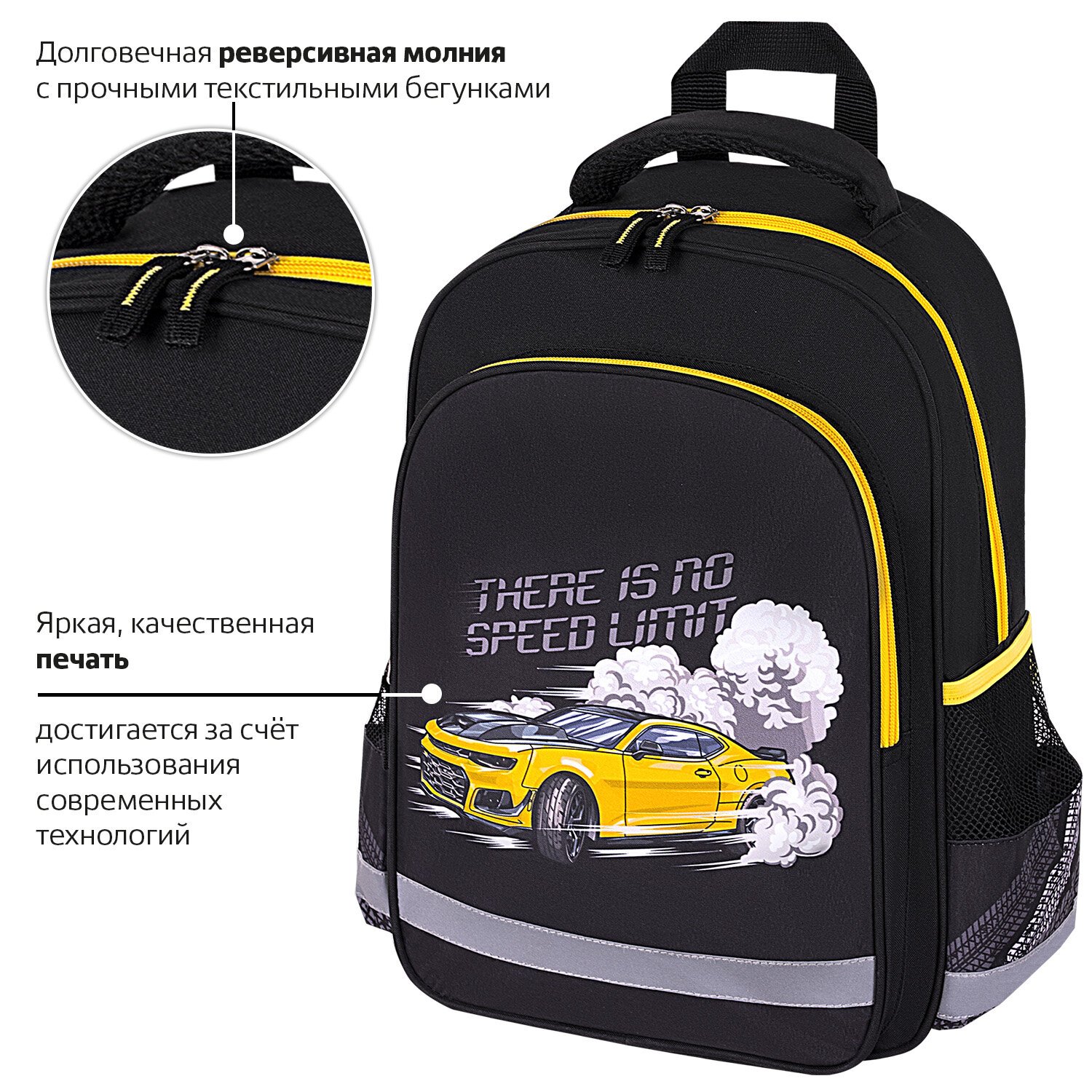 Рюкзак ПИФАГОР SCHOOL, 1 отделение, 3 кармана, "Extreme speed", 38x28х14 см, 272078