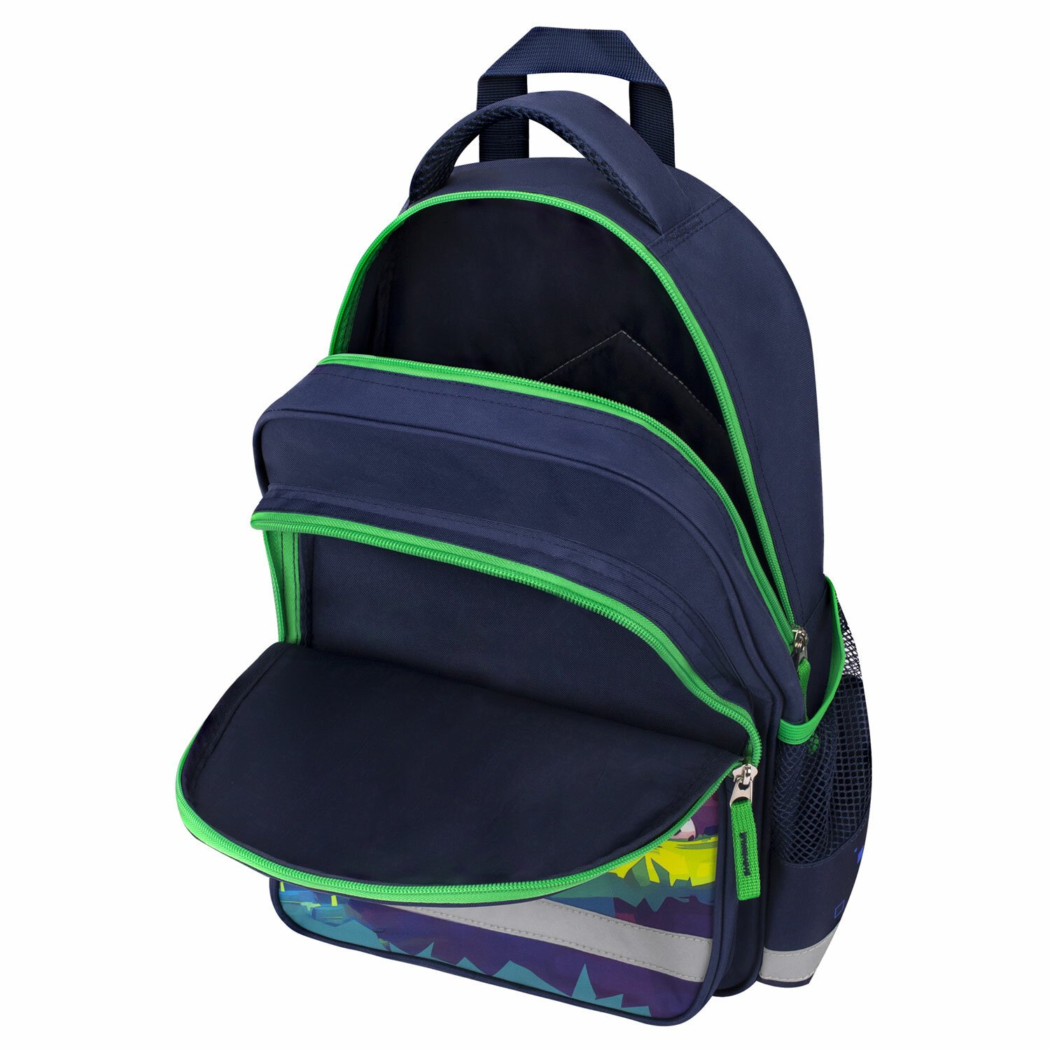 У рюкзака есть удобная ручка из ткани для переноски и петелька для подвешивания на крючок парты. Яркая и качественная печать, насыщенные цвета рисунков достигаются благодаря использованию современных технологий печати на ткани. Светоотражающие элементы со всех сторон рюкзака обеспечивают безопасность в темное время суток.