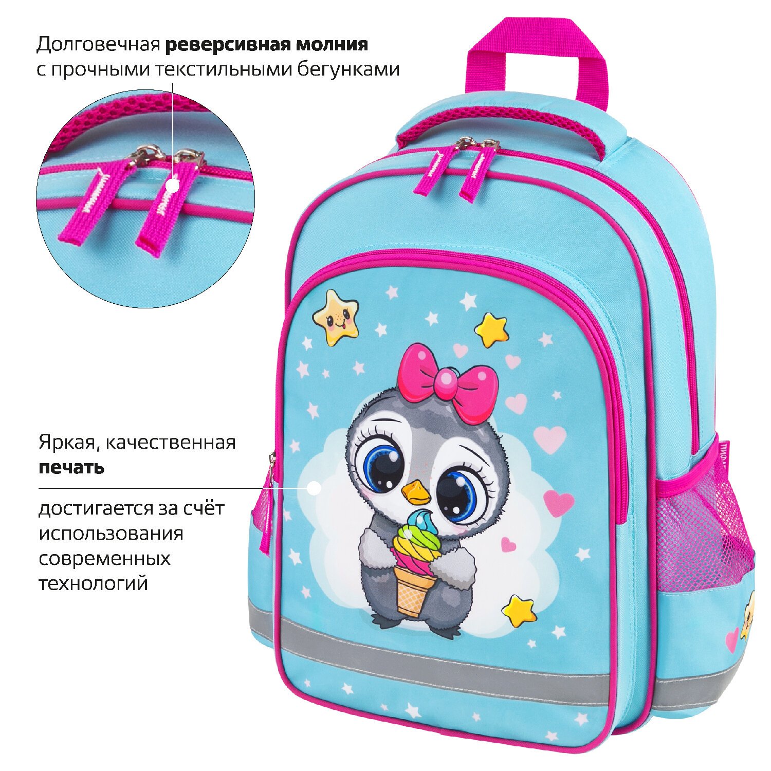 Рюкзак ПИФАГОР SCHOOL, 1 отделение, 3 кармана, "Smart penguin", 38x28х14 см, 271403