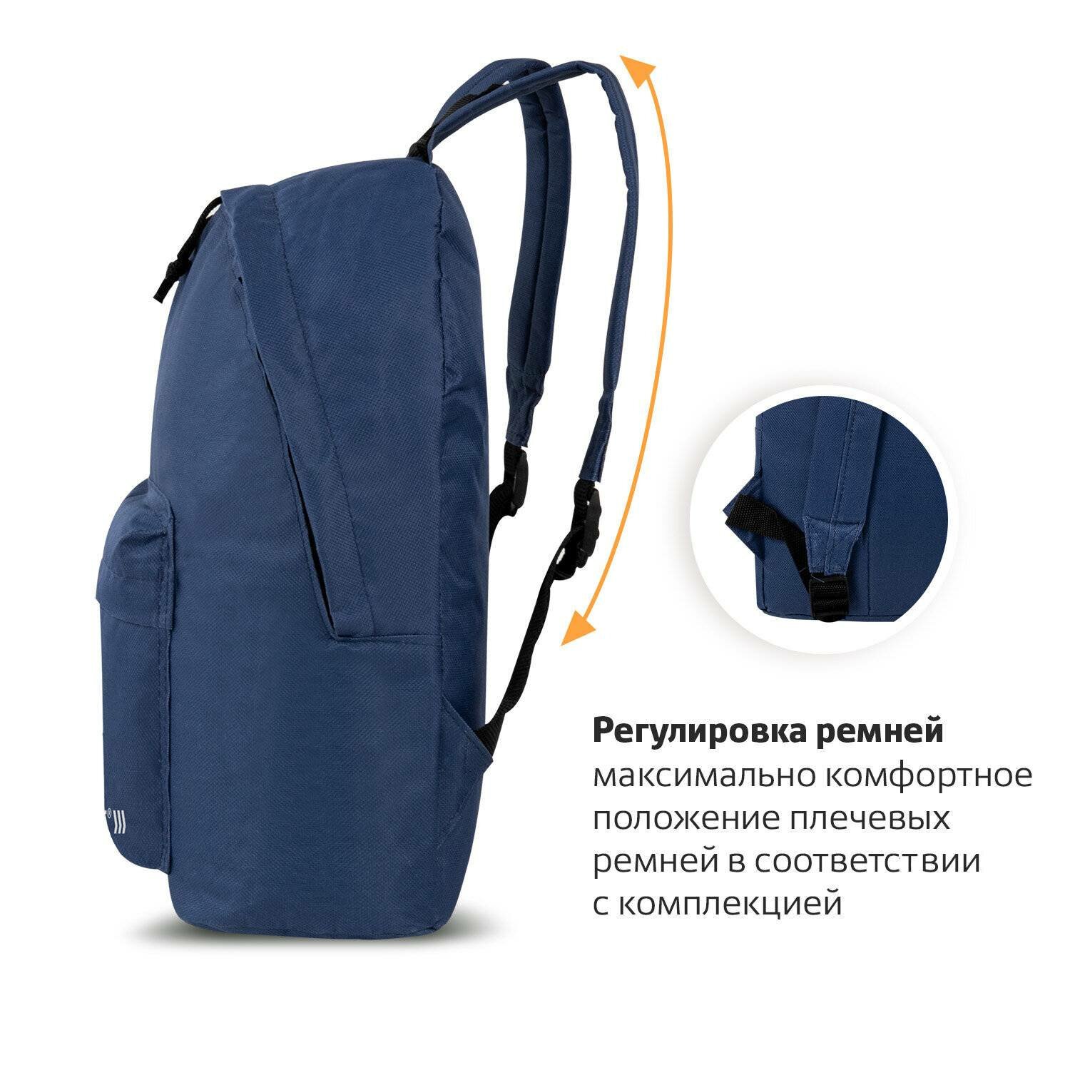 Плотные лямки рюкзака легко можно отрегулировать по длине. Ширина лямок - 5 см. Фиксированная длина - 34,5 см. Регулируемая длина - 38 см. Минимальная длина лямок - 42 см. Максимальная длина - 72 см. Дополнительный усилительный шов в местах крепления лямок позволил сделать их еще надежнее! Спинка дополнительно уплотнена для большего комфорта.