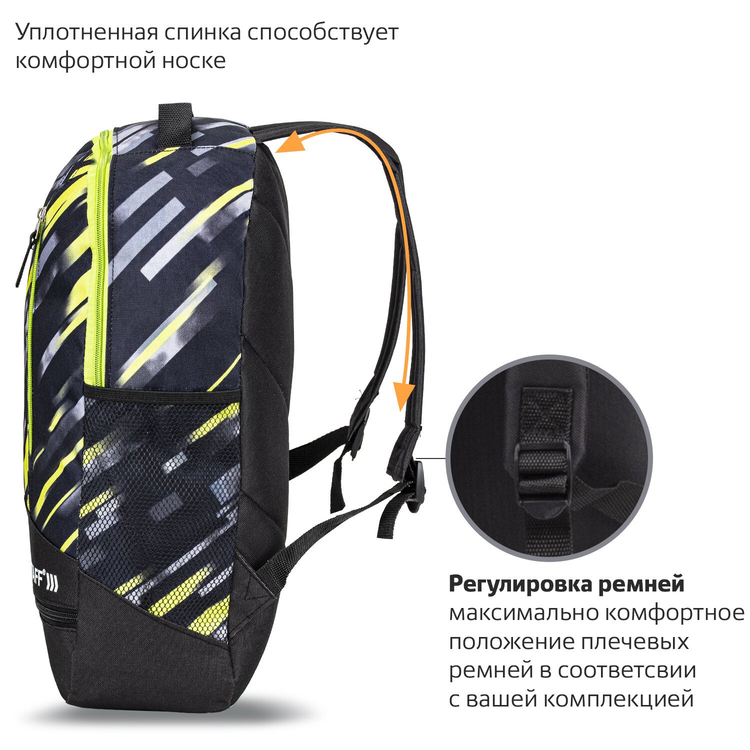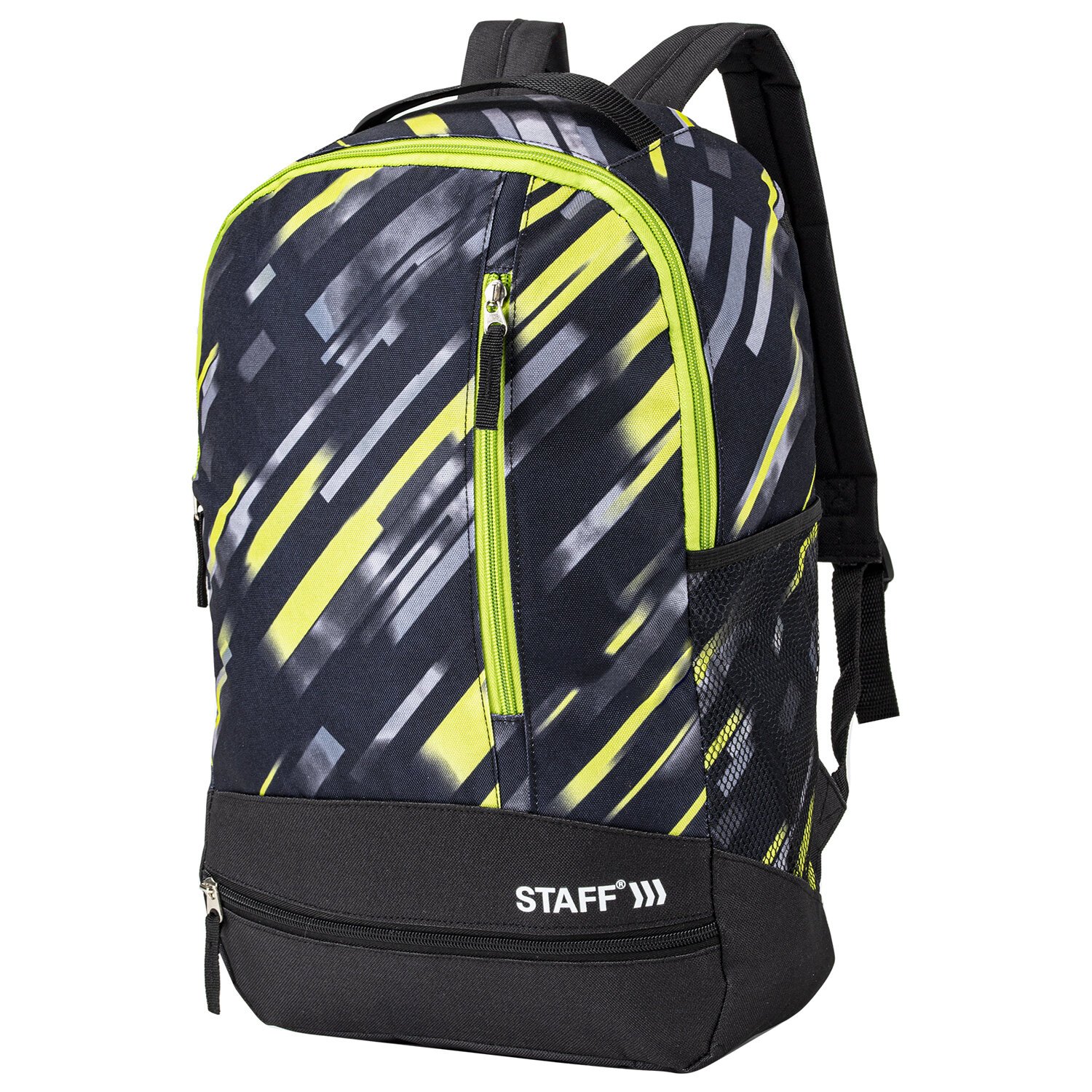 Рюкзак STAFF STRIKE универсальный, 3 кармана, черно-салатовый, 45х27х12 см, 270783