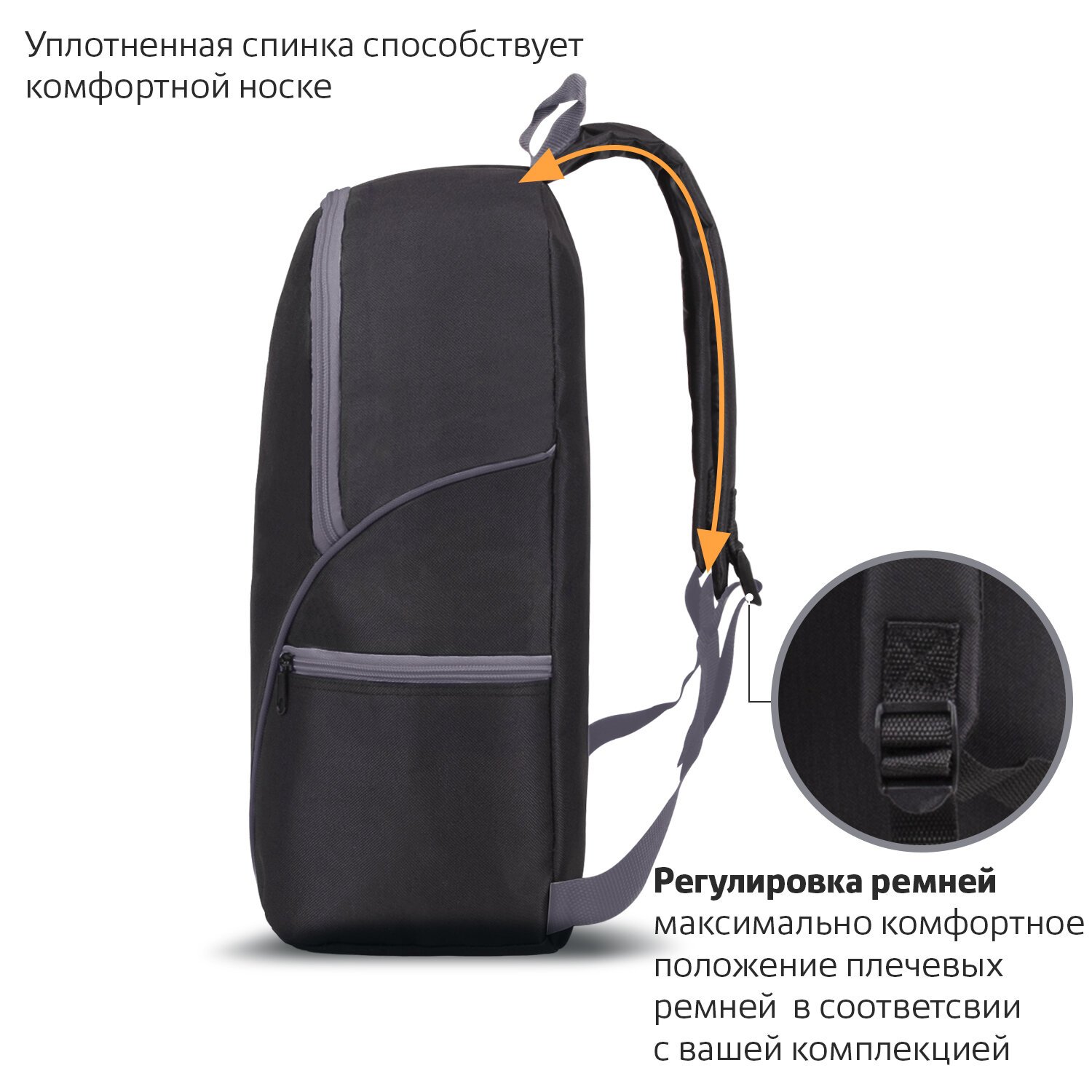 Рюкзак STAFF TRIP универсальный, 2 кармана, черный с серыми деталями, 40x27x15,5 см, 270787