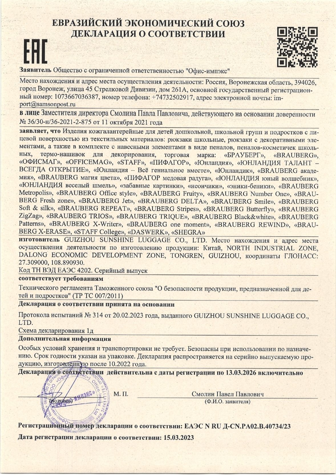 Рюкзак упакован в плотный ПЭТ пакет с замком Zip Lock с ручками, который сохранит качество и товарный вид при хранении и транспортировке.