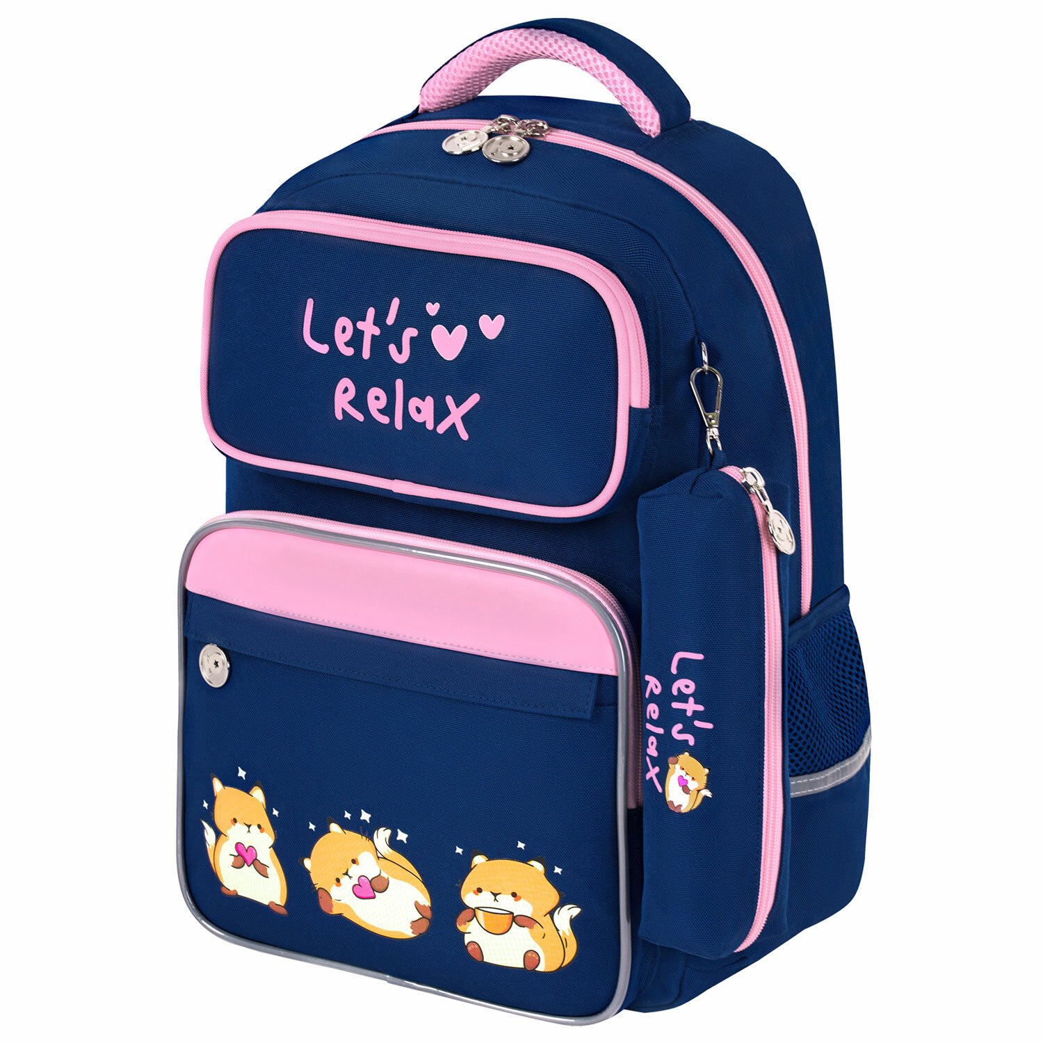 Рюкзак с формоустойчивой вентилируемой спинкой имеет 1 вместительное отделение на молнии и 5 карманов. Оптимальный размер рюкзака позволяет вместить все необходимые школьные принадлежности. Мягкие широкие регулируемые лямки способствуют оптимальному распределению веса.