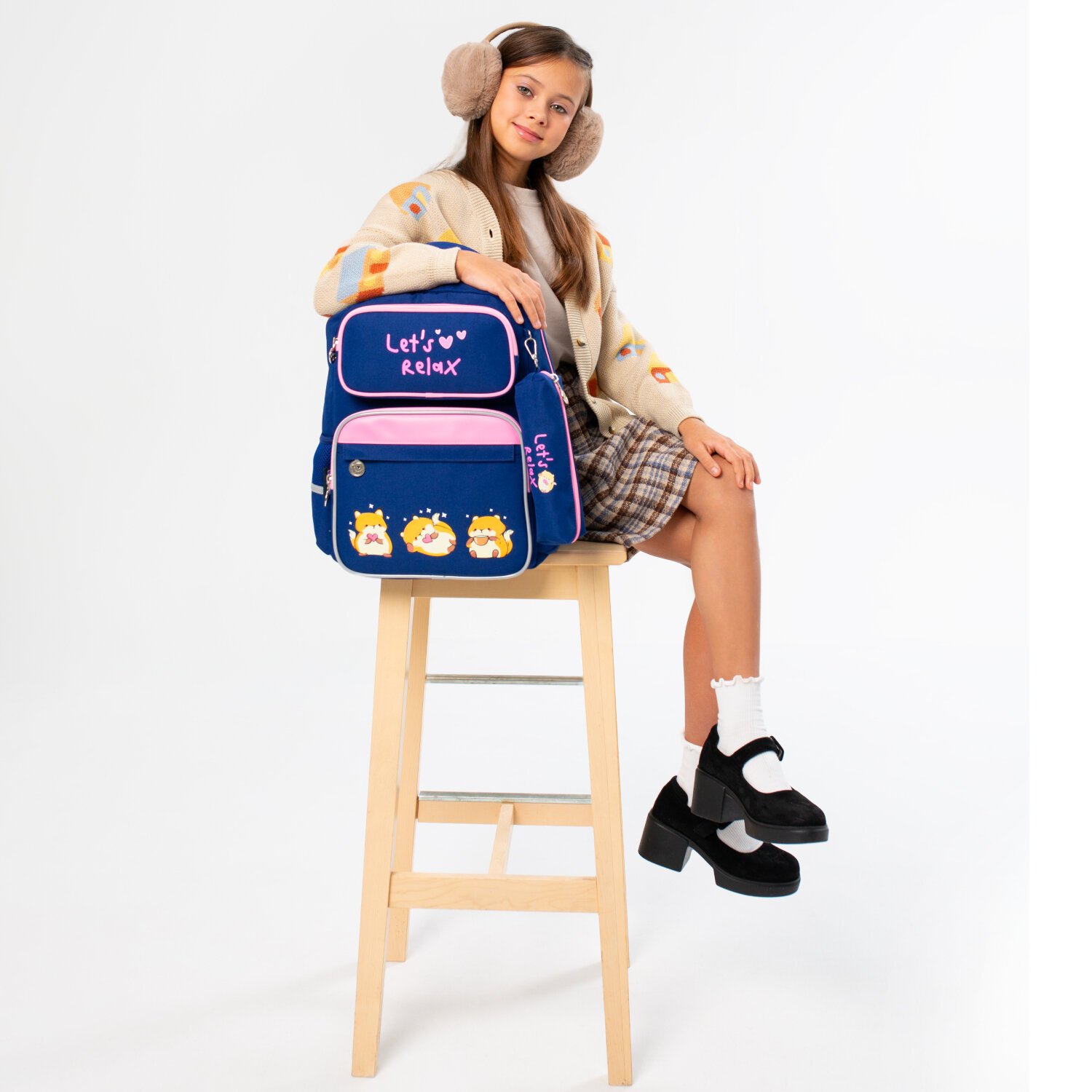 Рюкзак ЮНЛАНДИЯ COMPLETE с пеналом в комплекте, эрго-спинка, "Relaxing cats", 42х29х14 см, 273121