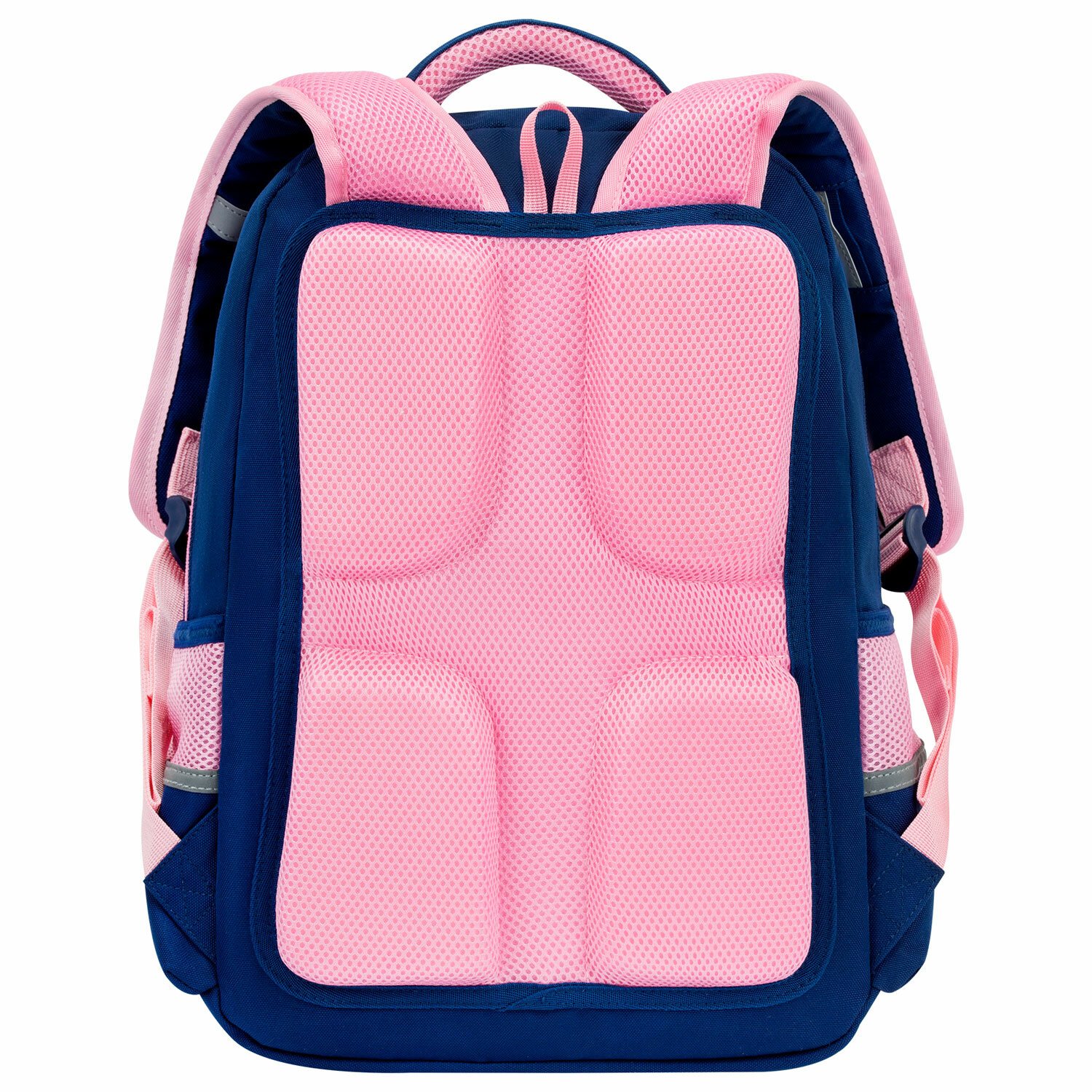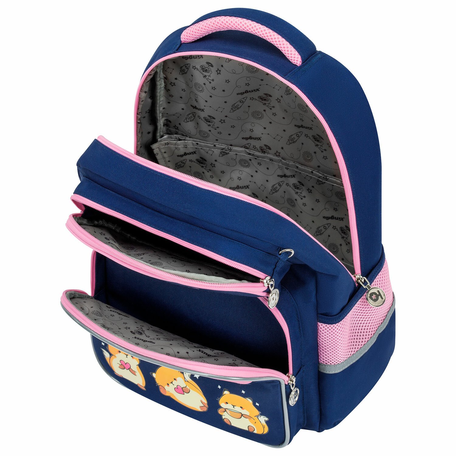Рюкзак снабжен усиленной ручкой из ткани и петелькой для подвешивания на крючок, а также фиксатором для тетрадей. Светоотражающие элементы с четырех сторон обеспечивают безопасность в темное время суток.