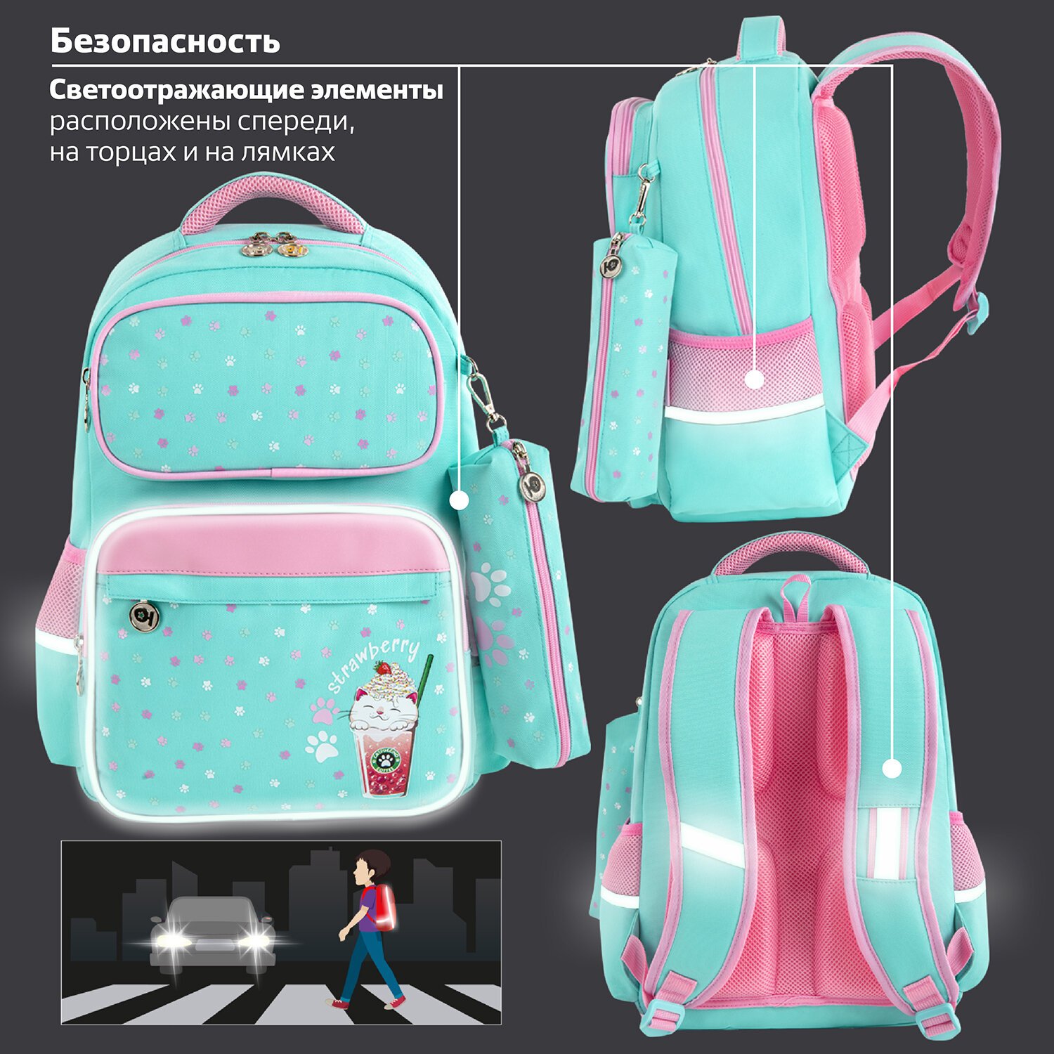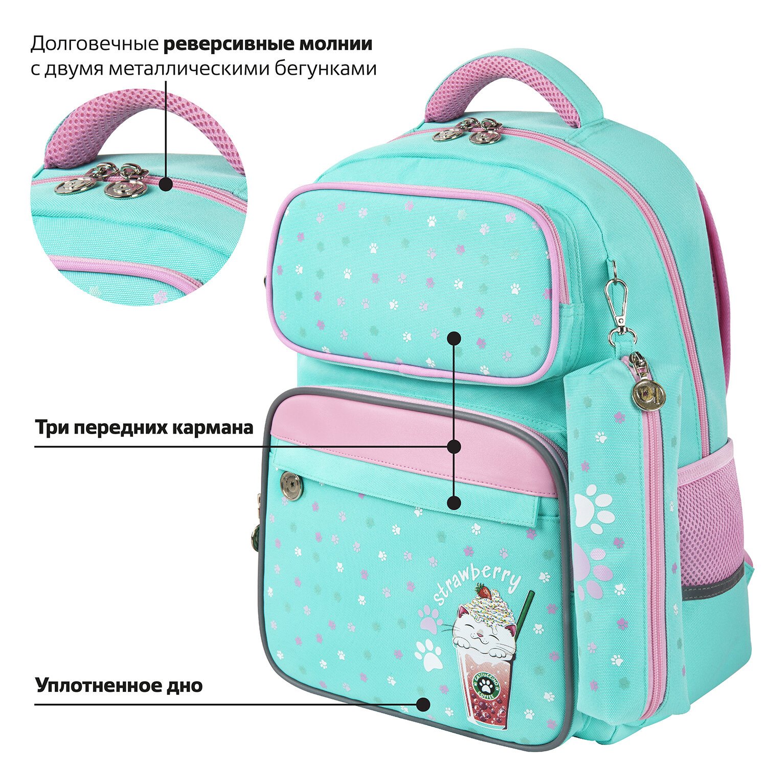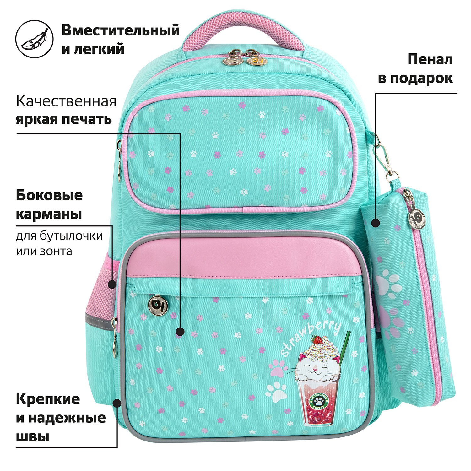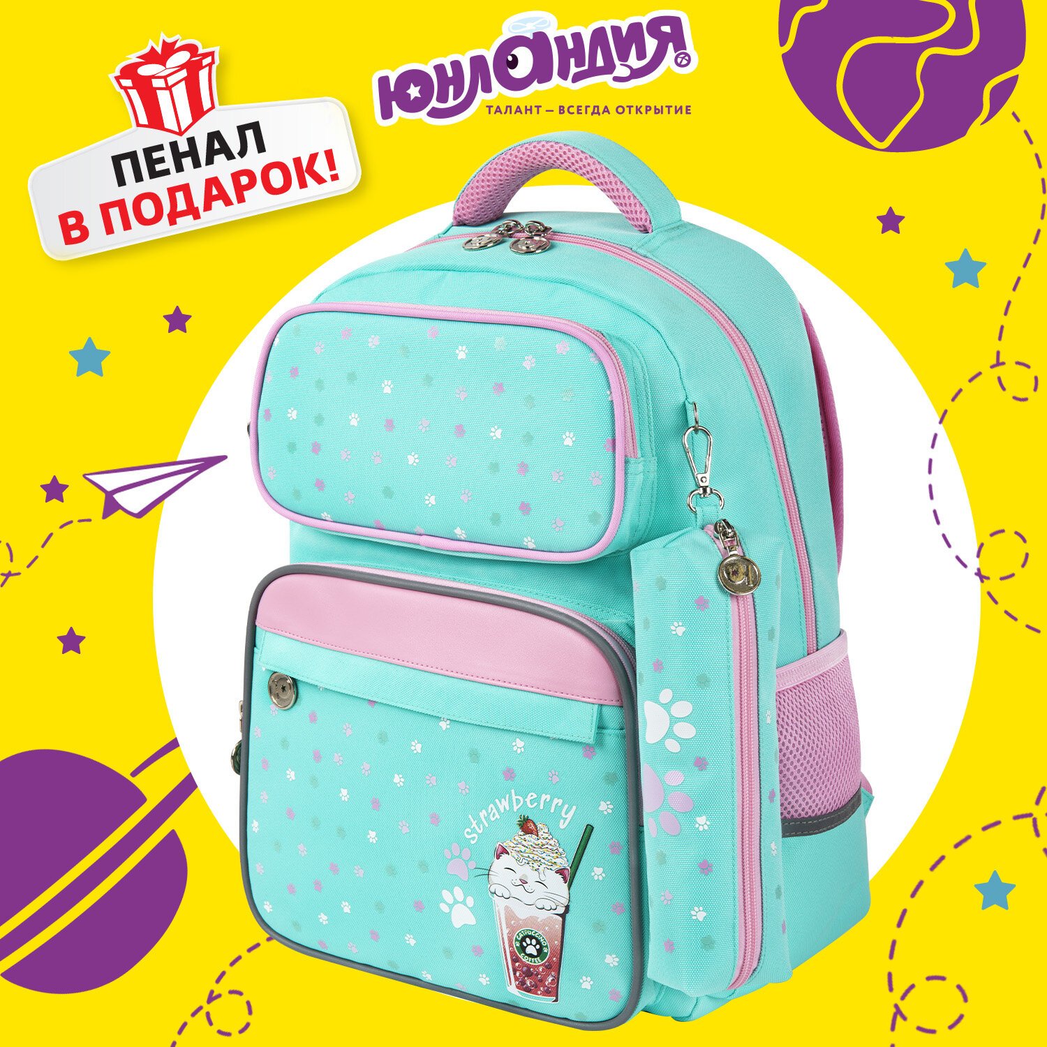 Рюкзак ЮНЛАНДИЯ COMPLETE с пеналом в комплекте, эрго-спинка, "Yummy cat", 42х29х14 см, 270663