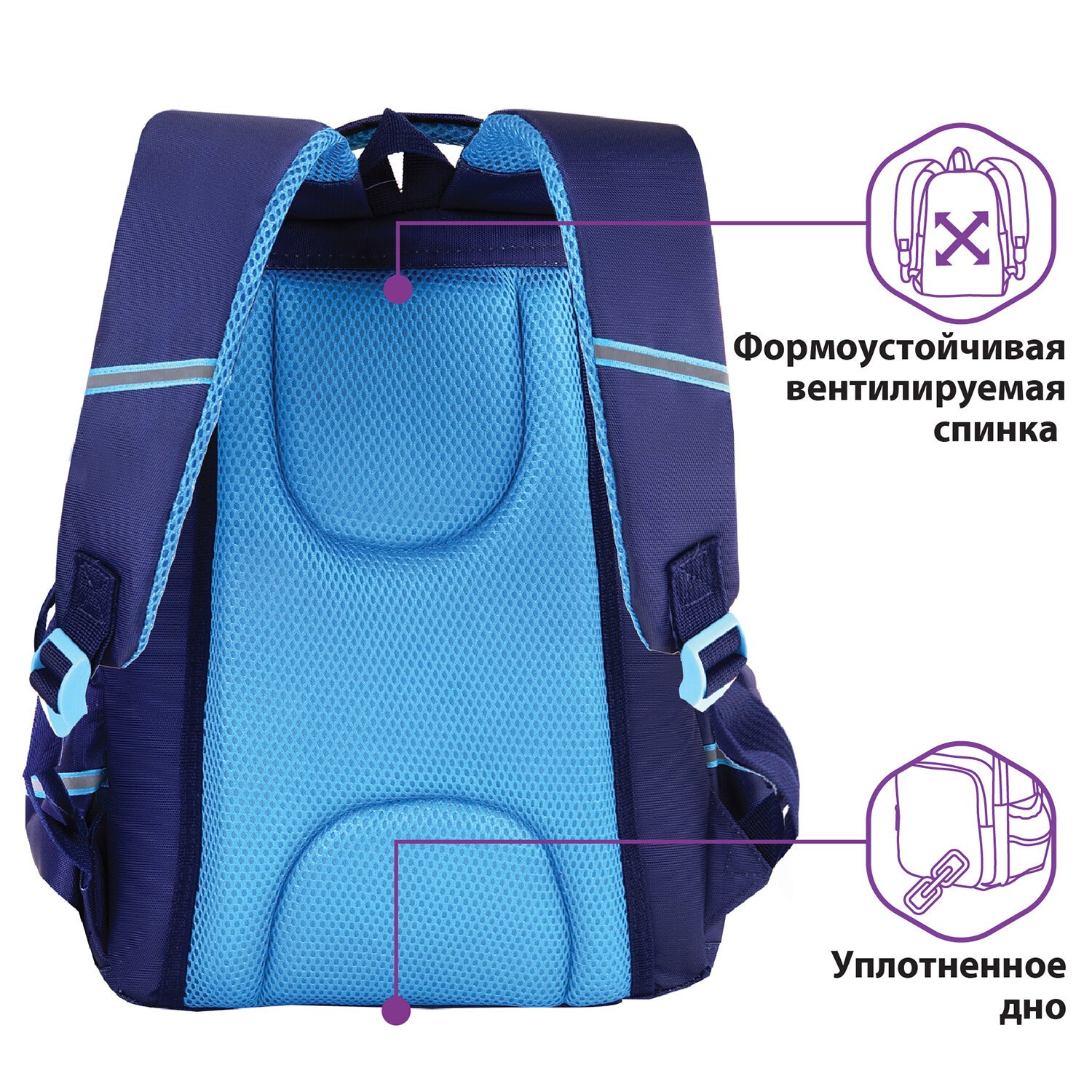 Удобная мягкая вентилируемая спинка с воздушными спонжевыми панелями разработана с учетом анатомических особенностей детей младшего школьного возраста. При правильной регулировке рюкзак будет практически не ощущаться на плечах и не будет доставлять дискомфорт при носке. В процессе эксплуатации равномерное распределение нагрузки позволит сохранить правильную осанку!
