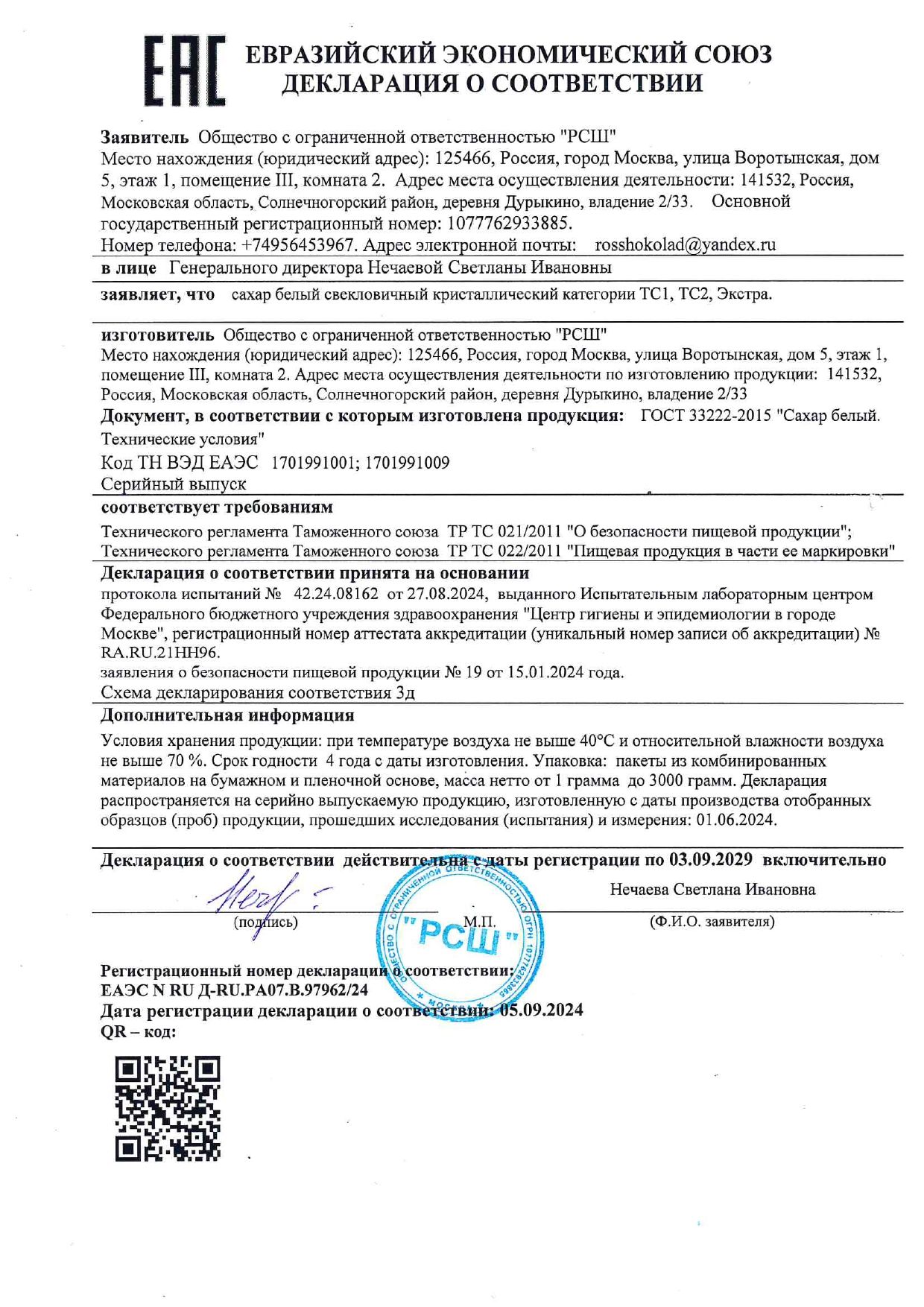 | Фирма-производитель | ООО РосШоколад |