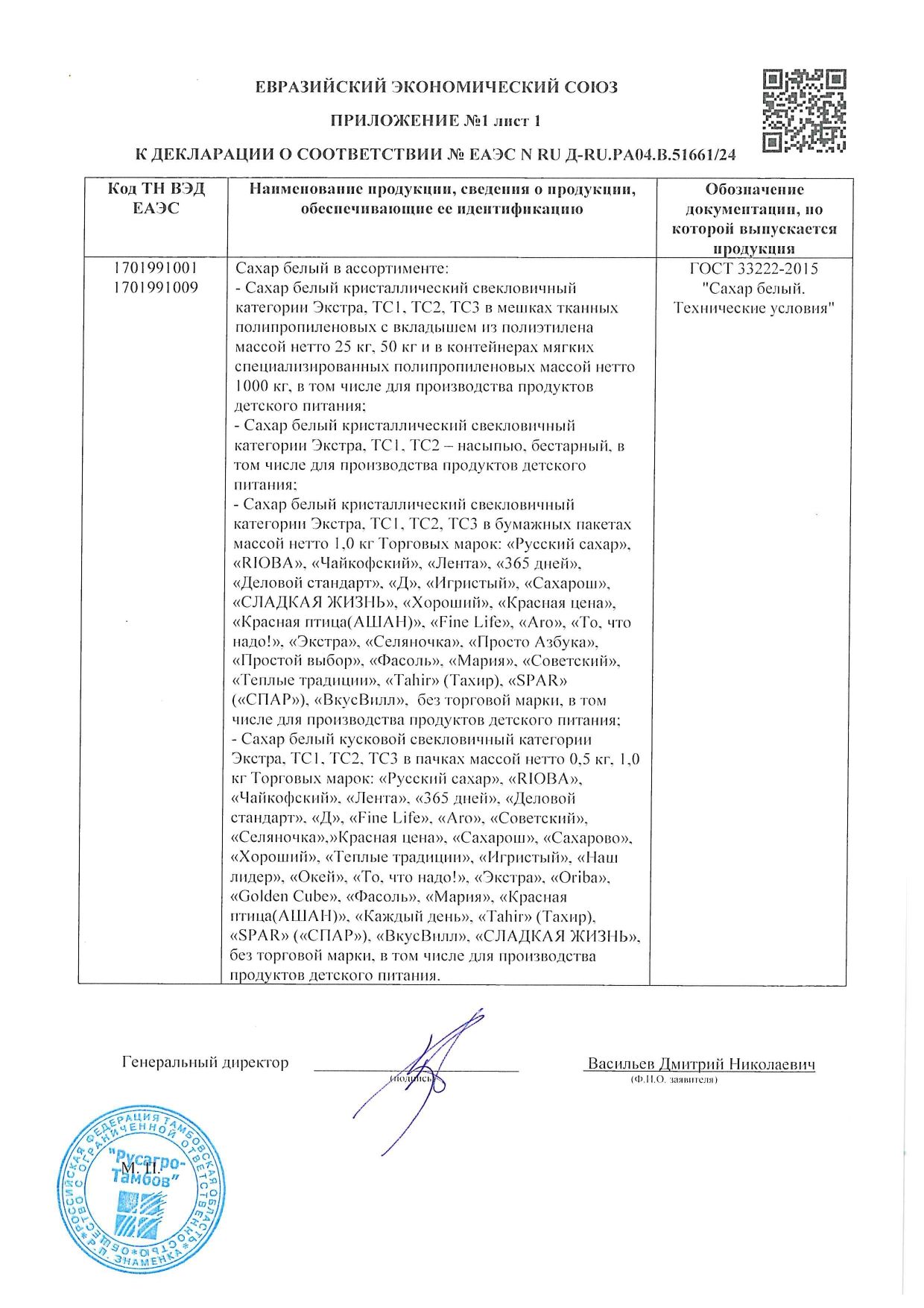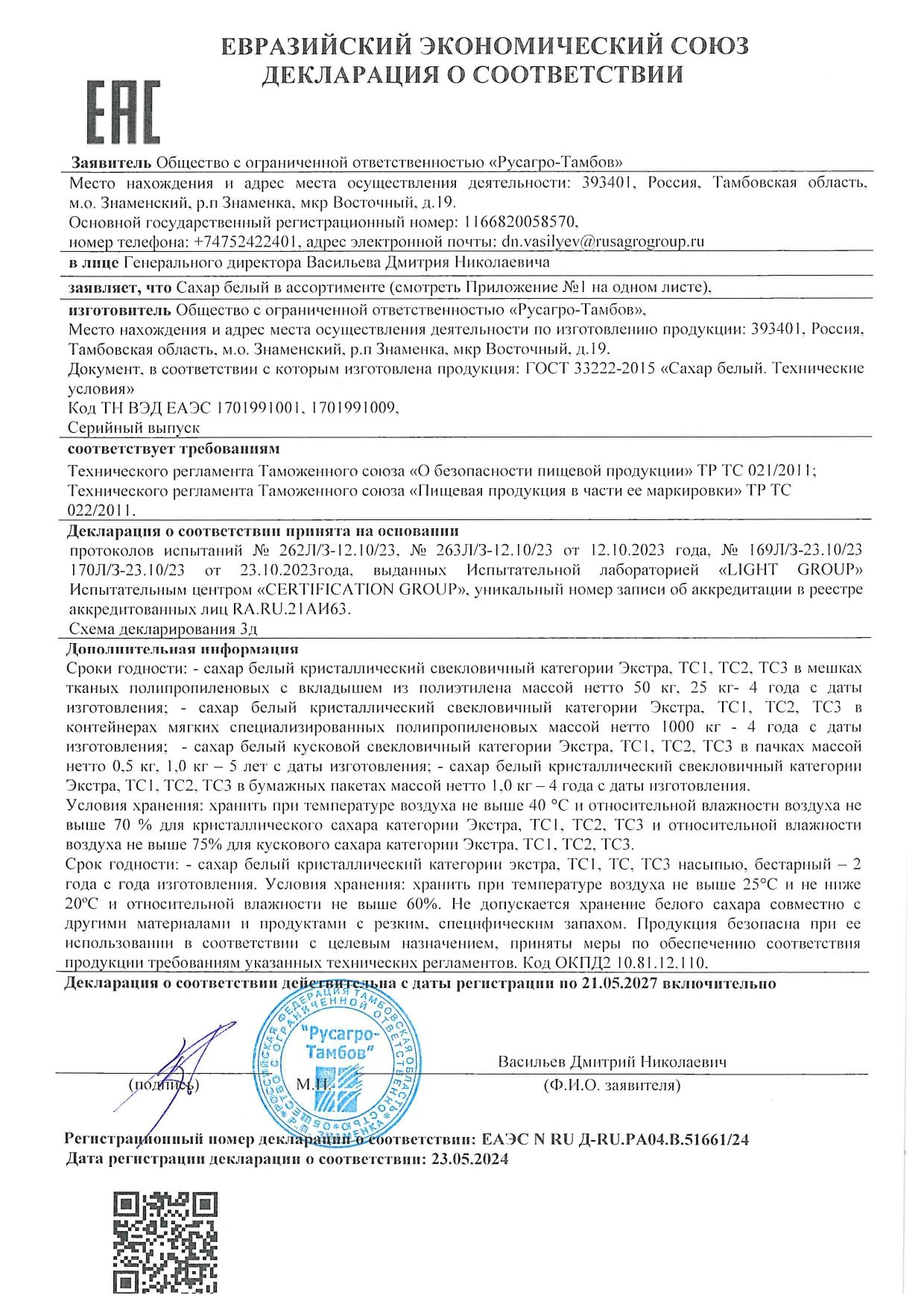 | Фирма-производитель | ОАО "Валуйкисахар" |