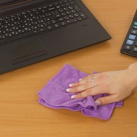 - стойкий фиолетовый цвет, который сделает процесс уборки нескучным занятием, также при многократной стирке микрофибра не приобретет застиранный вид;