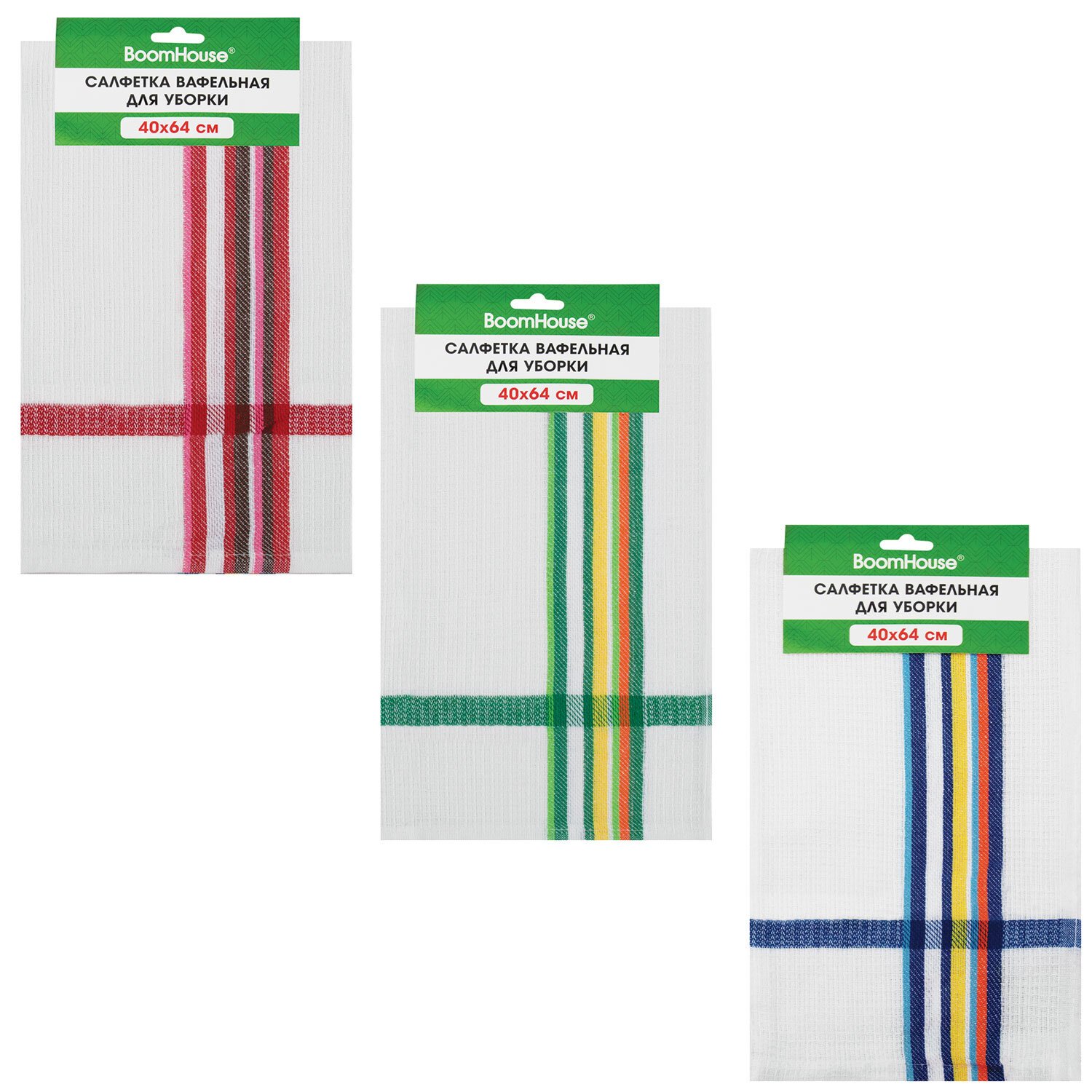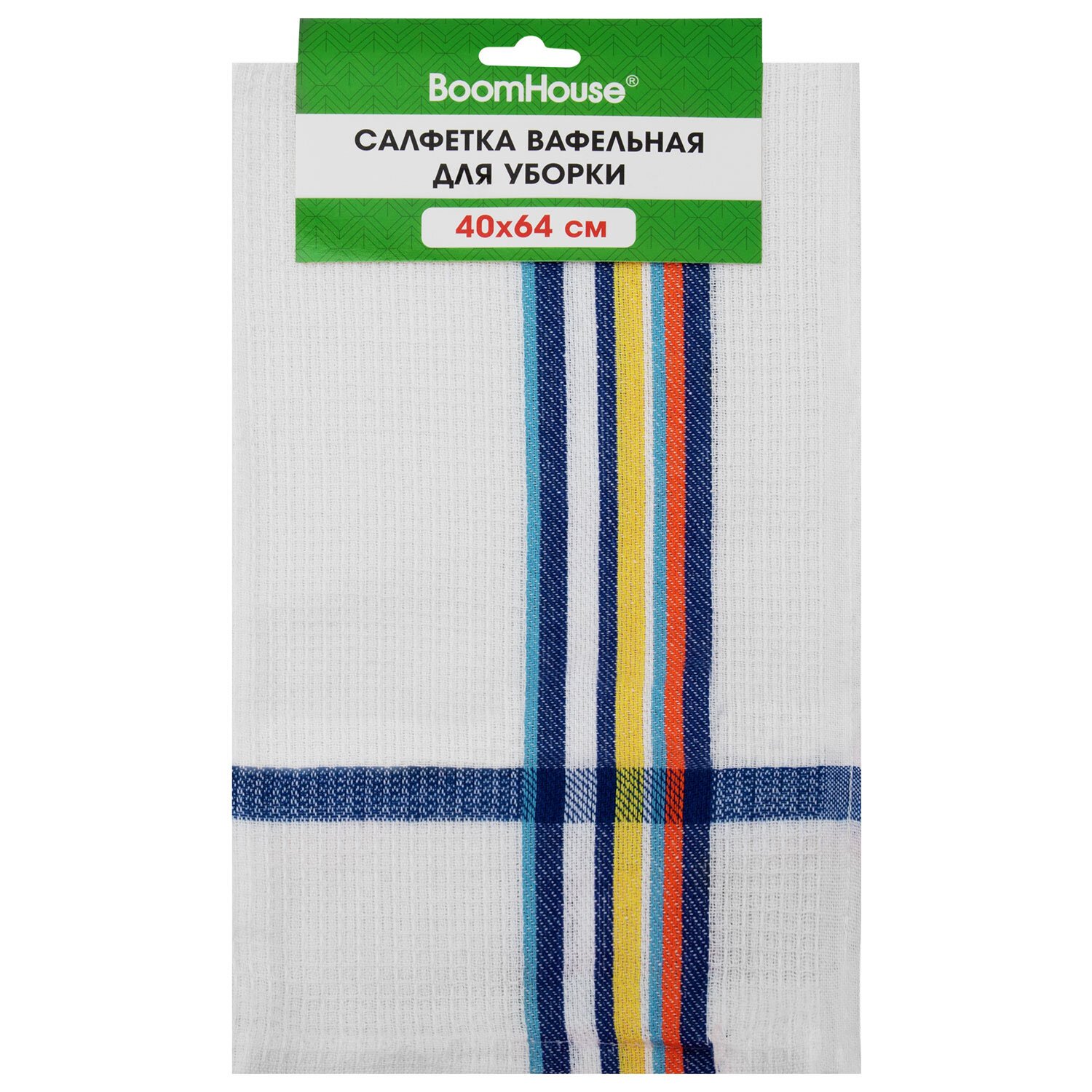 Салфетка вафельная универсальная ХЛОПОК 40 х 64 см, цветная полоска, ассорти, BOOMHOUSE, 700884