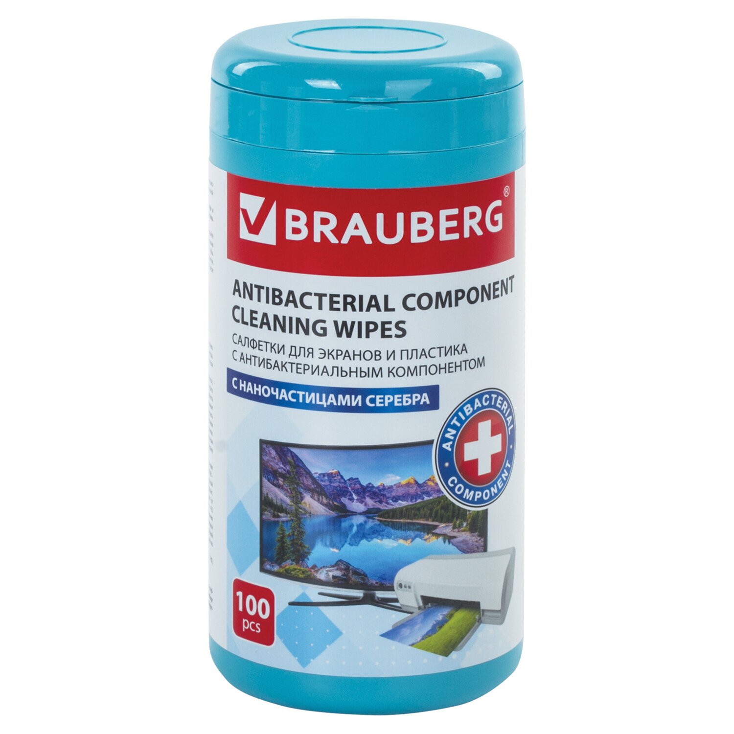 Салфетки АНТИБАКТЕРИАЛЬНЫЕ ДЛЯ МОНИТОРОВ И ПЛАСТИКА, ПЛОТНЫЕ, BRAUBERG, 100 шт., 513476