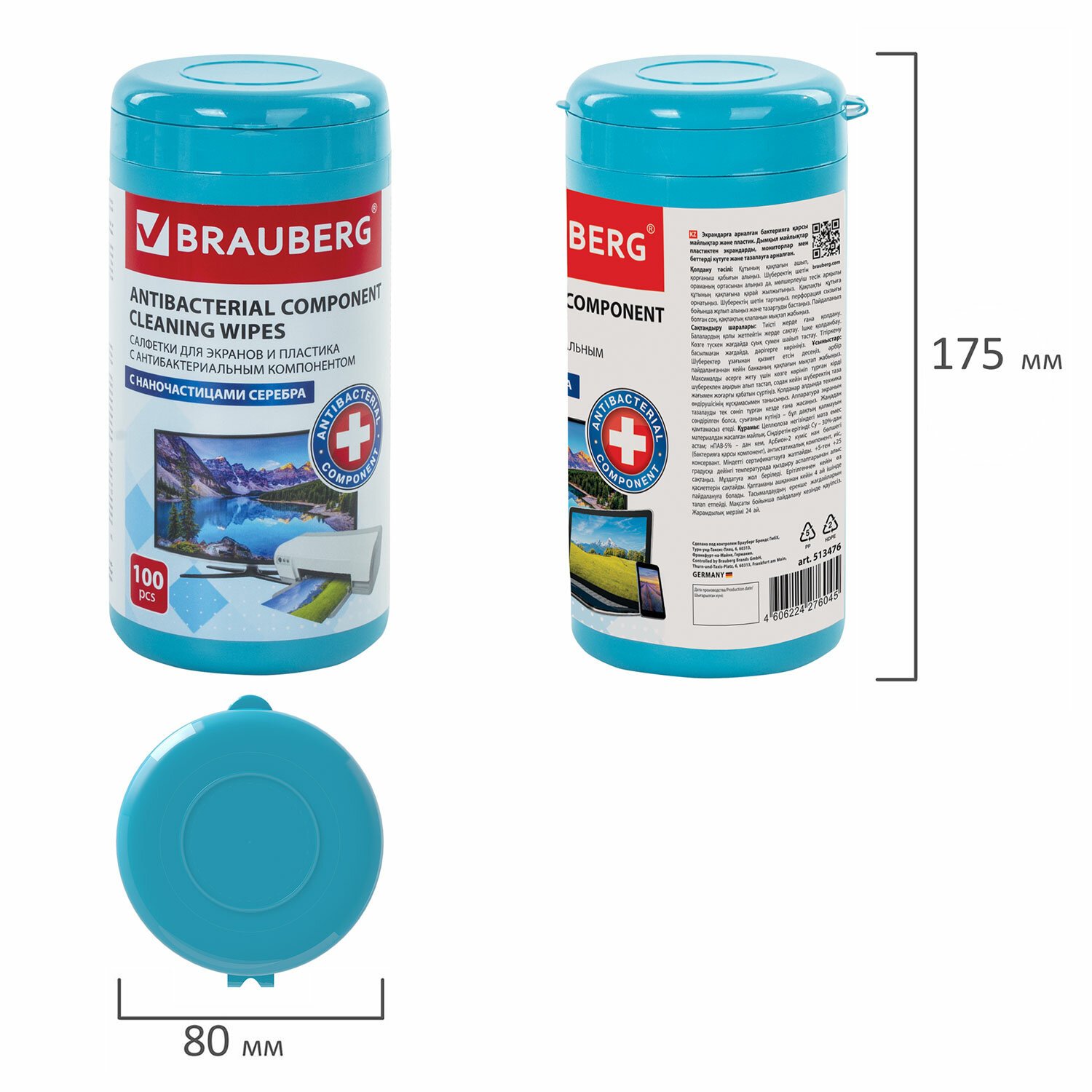 Салфетки для экранов всех типов и пластика BRAUBERG с ароматом "АСТРА", в тубе 100 шт., влажные, 511689