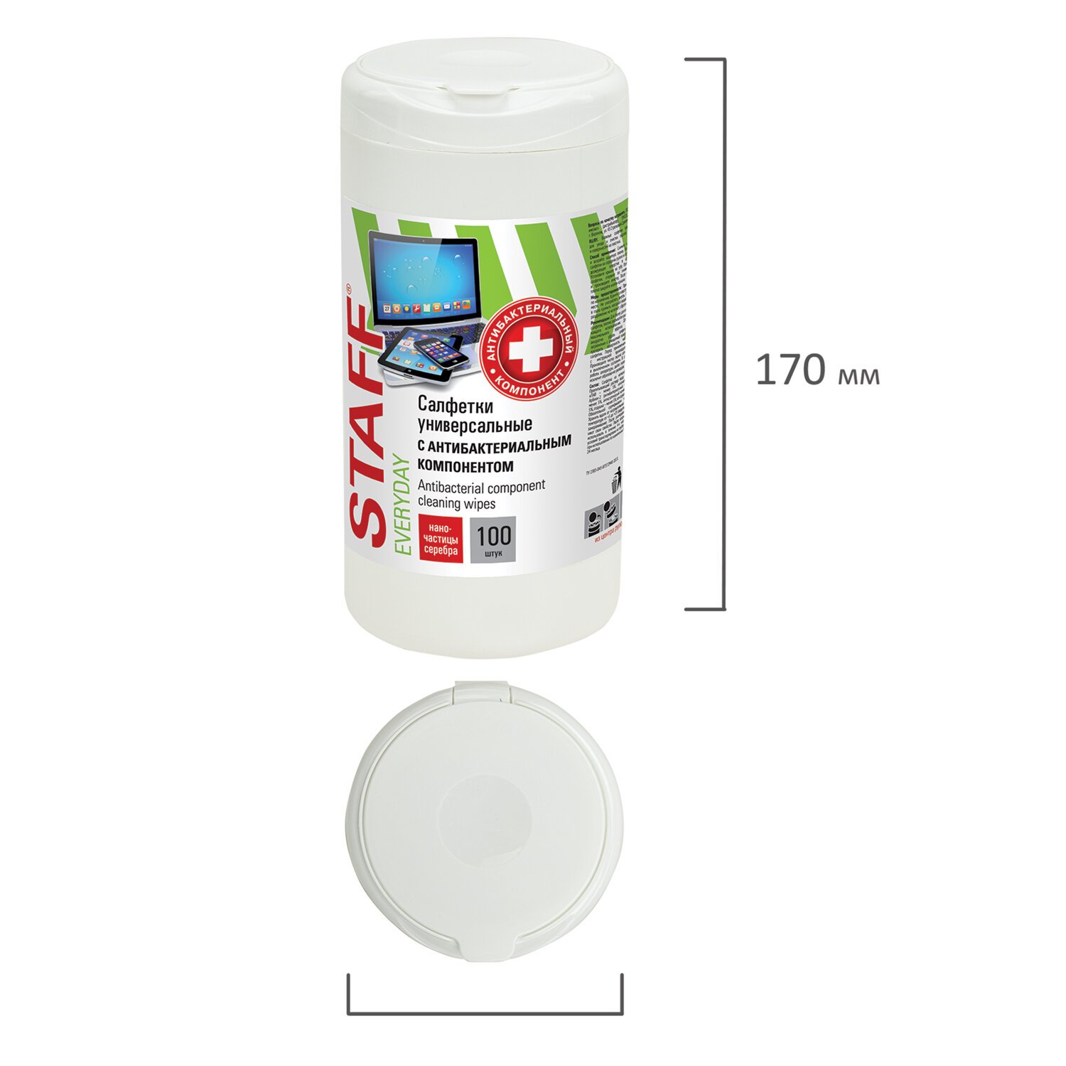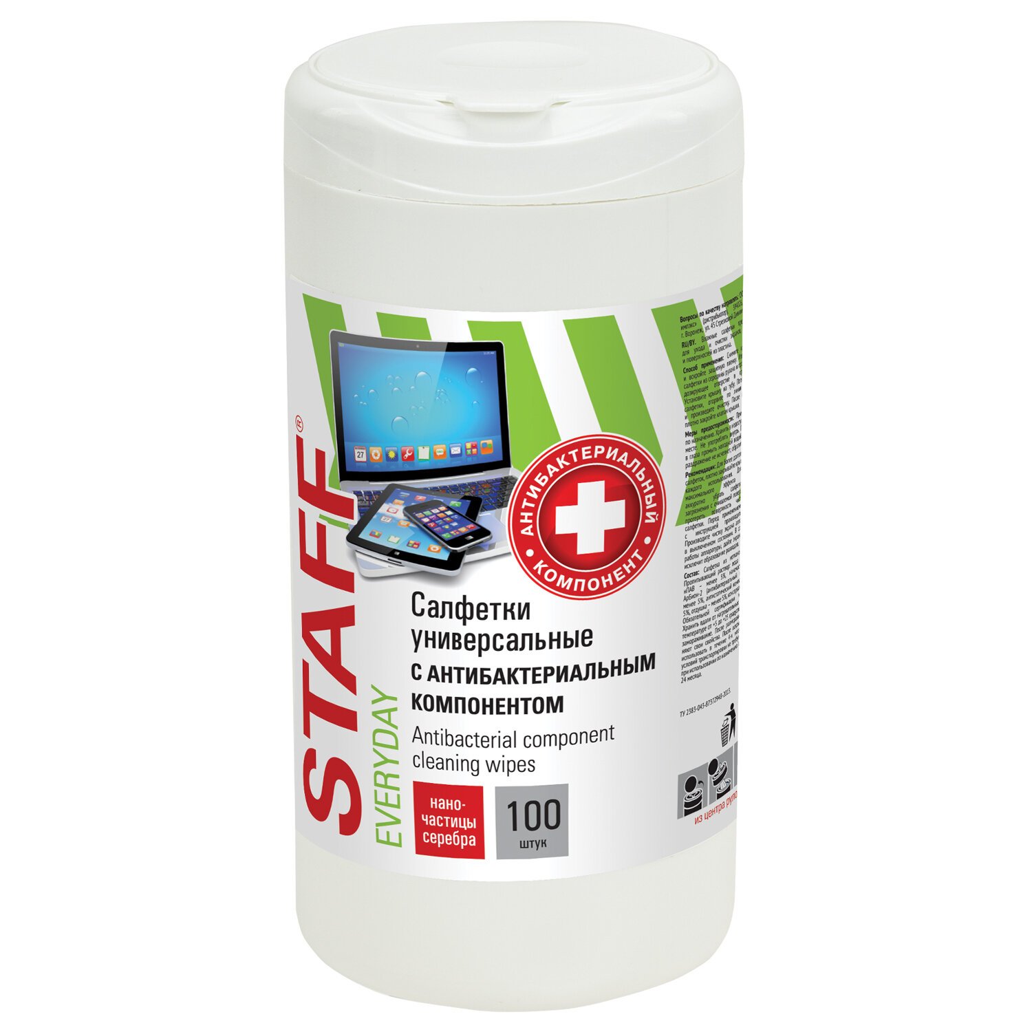 Салфетки АНТИБАКТЕРИАЛЬНЫЕ универсальные, STAFF "EVERYDAY", 100 шт., 513478