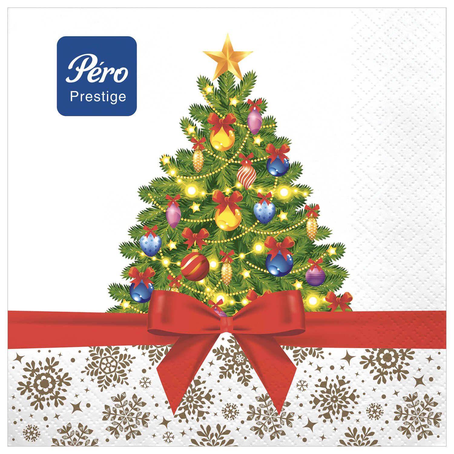 Салфетки бумажные 20 шт., 33х33 см, "Праздничная ель", 3-слойные, PERO "Prestige", 1046