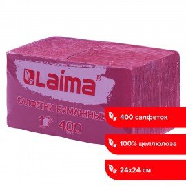 Салфетки бумажные 400 шт., 24х24 см, "Big Pack", бордовые, 100% целлюлоза, LAIMA, 114725