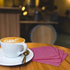 Упаковка содержит 400 салфеток размером 24х24 см. Однослойные салфетки 1/4 сложения выполнены в бордовом цвете. Тиснение придает изделию привлекательный внешний вид. Изготовлены из 100% целлюлозы, что обеспечивает прочность и повышенную впитываемость.