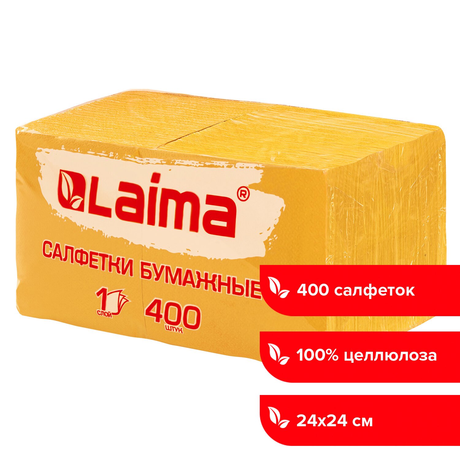 Салфетки бумажные 400 шт., 24х24 см, "Big Pack", жёлтые, 100% целлюлоза, LAIMA, 114726