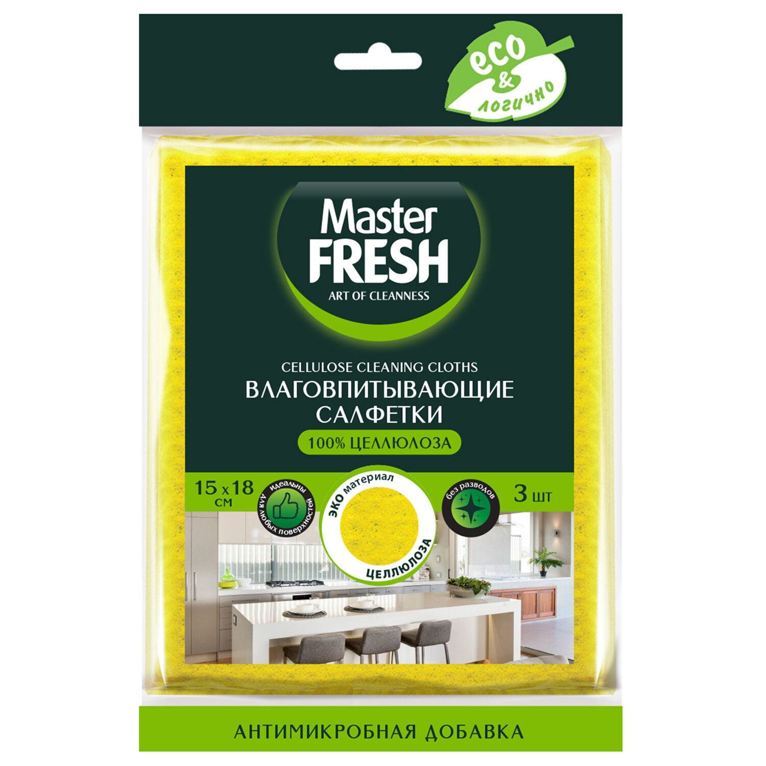 Салфетки целлюлозные (губчатые) 15х18 см антимикробная добавка 3 шт желтые, Master FR